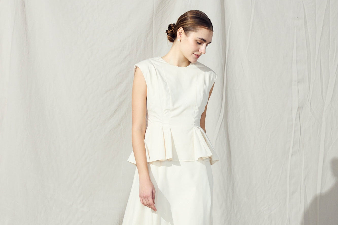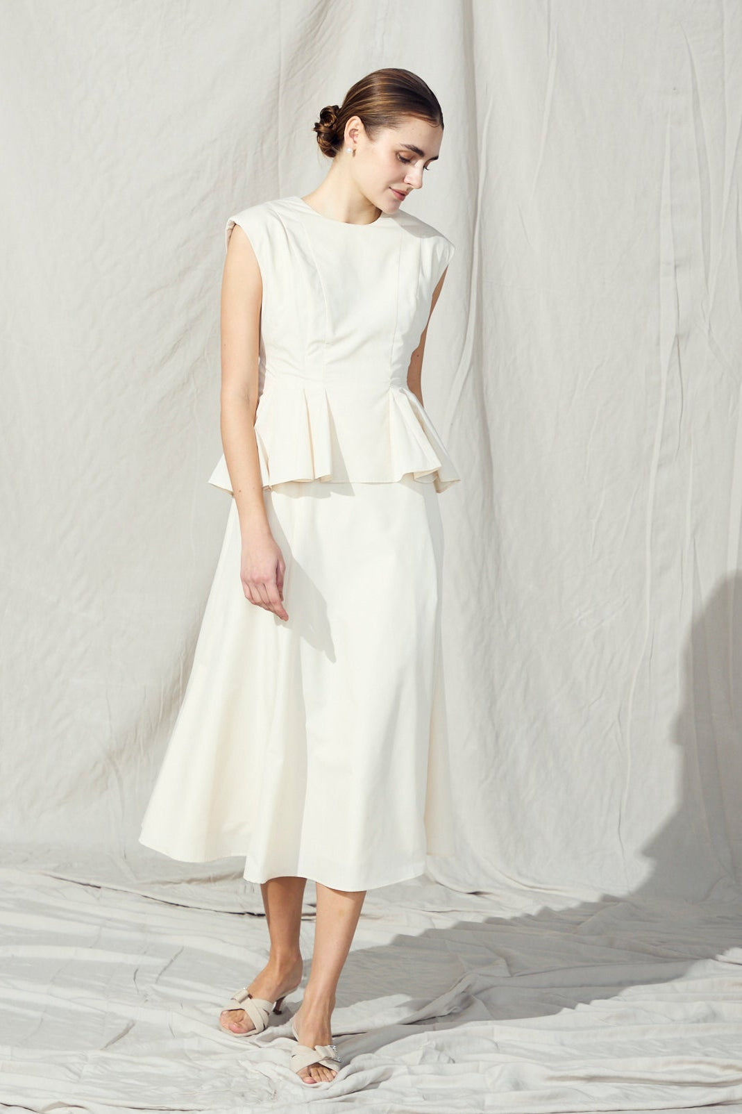 Staycation peplum dress (Estella.K×Audire) (Ivory)