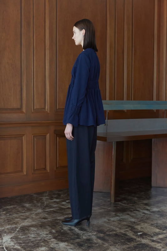 Audire ruffle sleeve blouse (Navy)