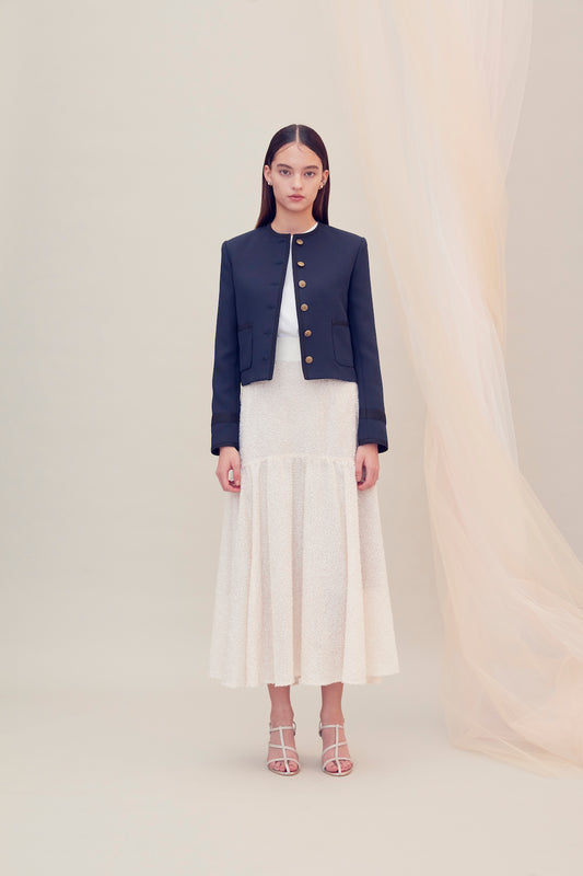No collar box jacket (Navy×Black)