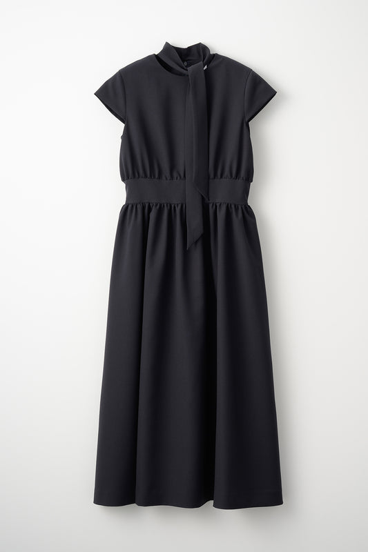 Stand neck flowing dress(Charcoal Black)