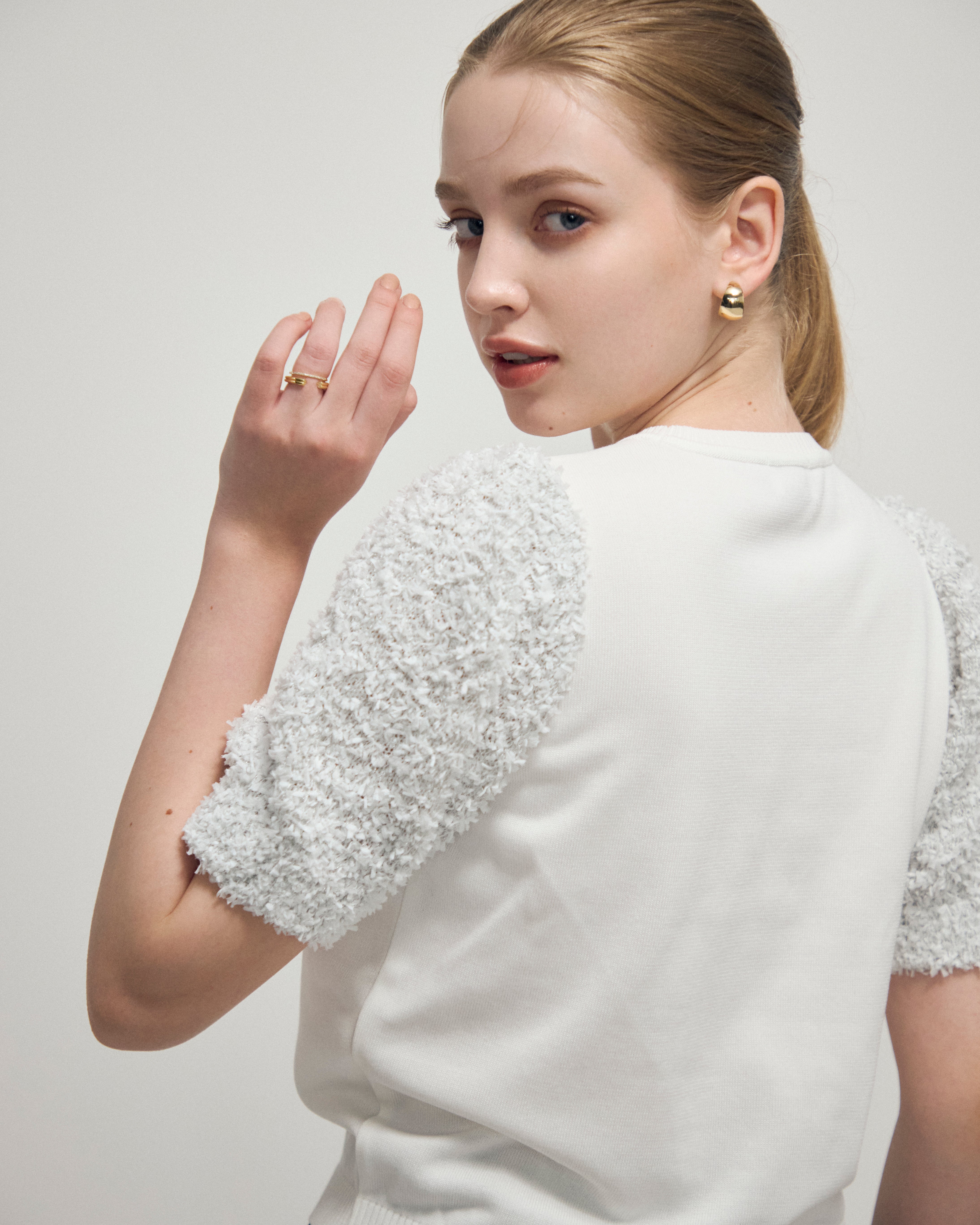 Flurries sleeve kint tops(White) ¥26,400