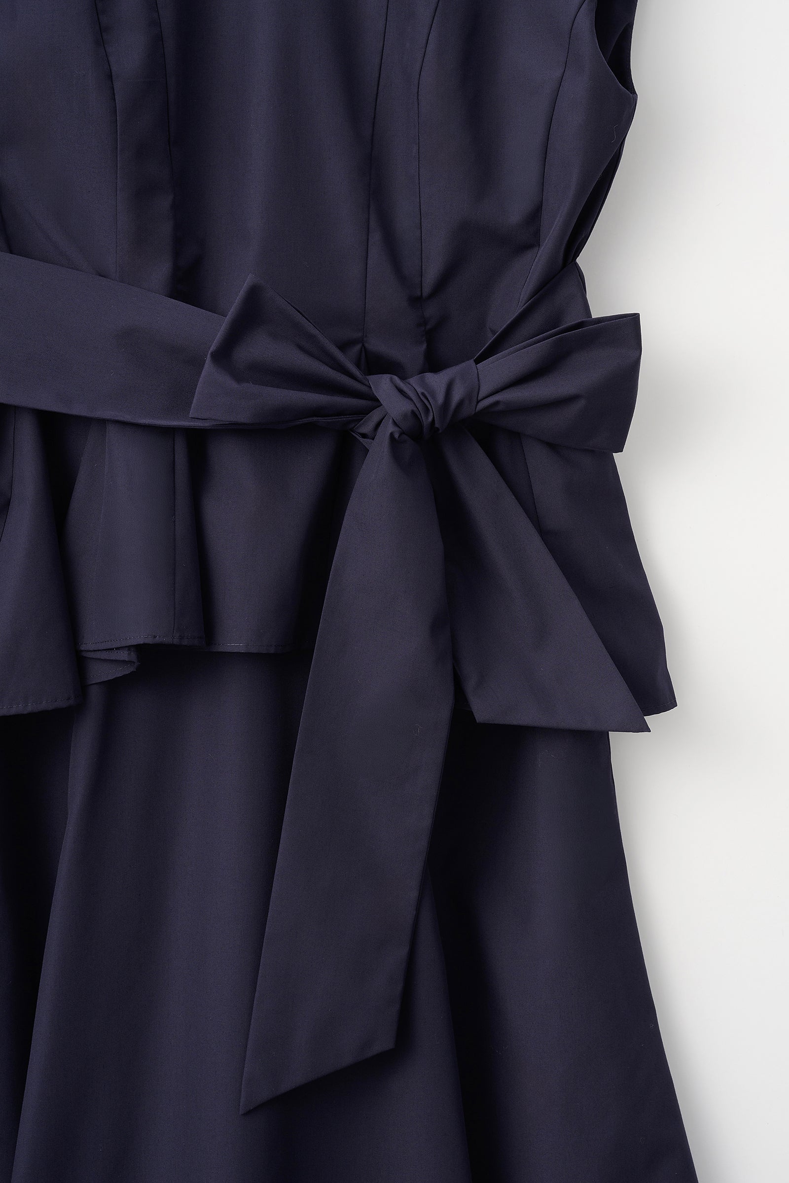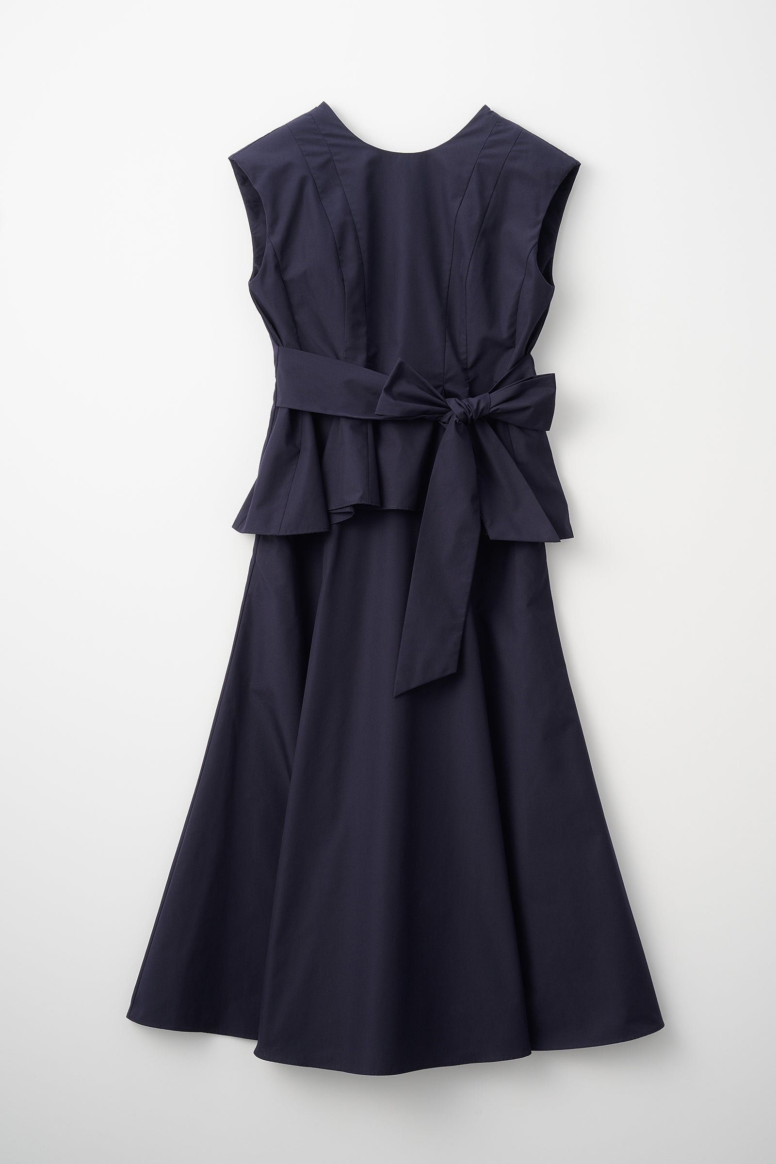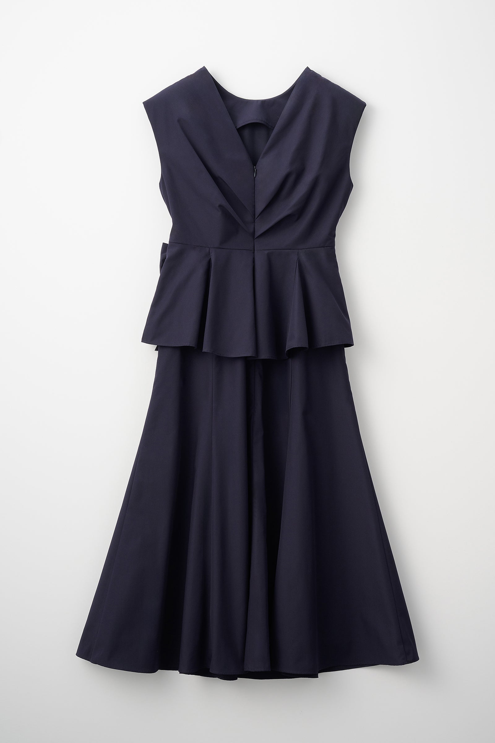 ウエスト部分にペプラムデザインを施したノースリーブドレス。