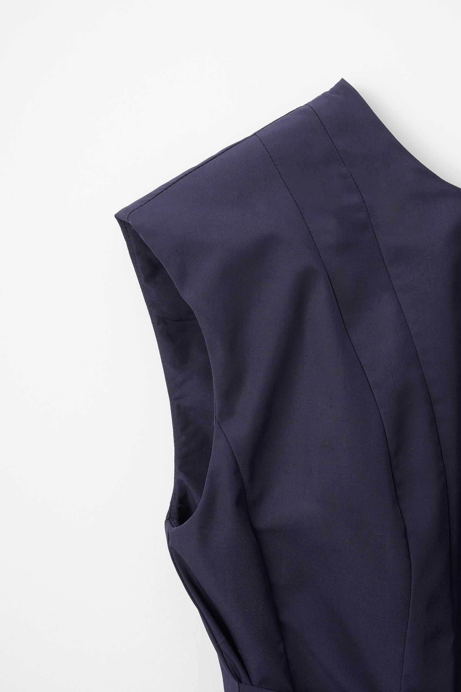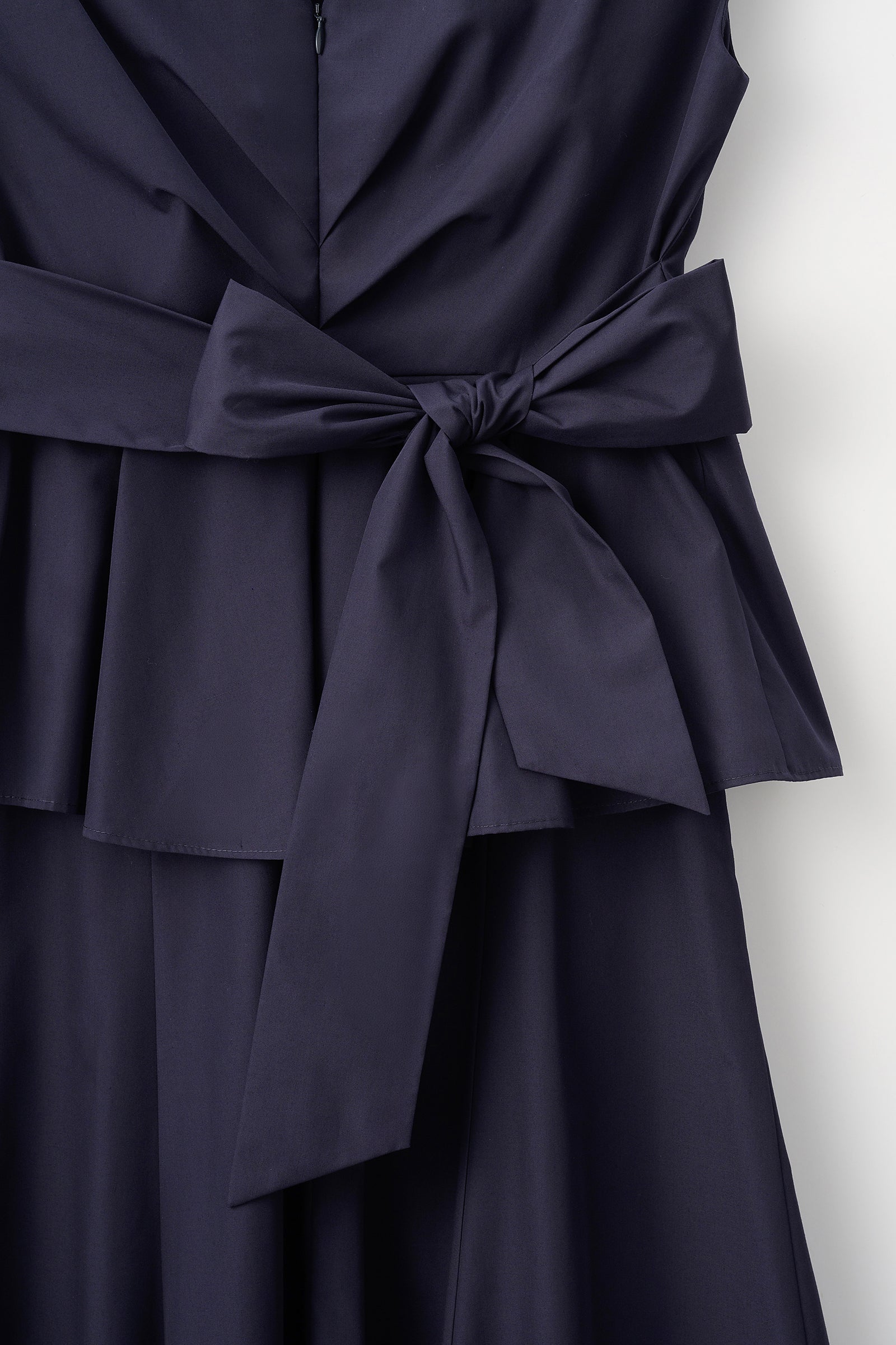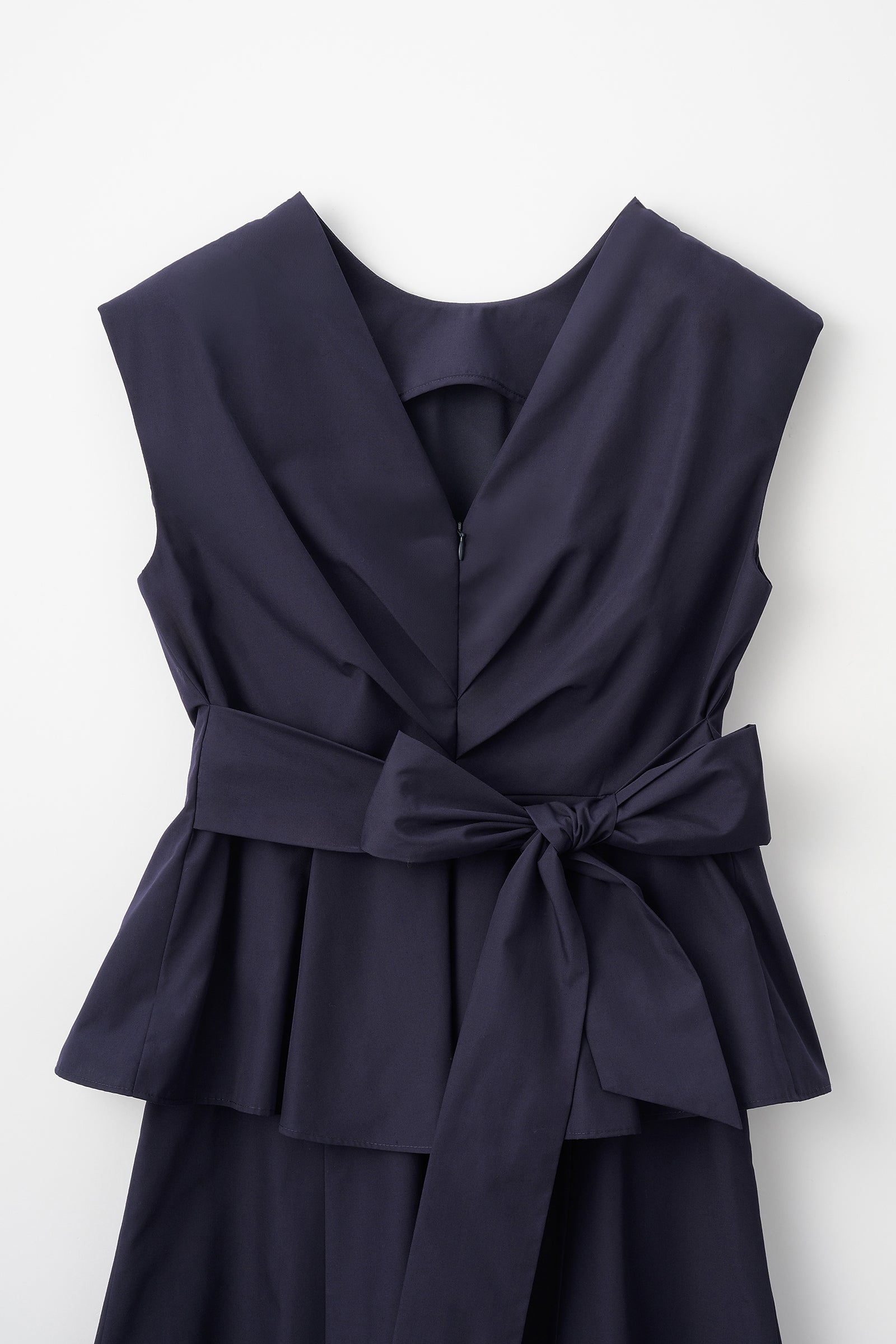 ウエスト部分にペプラムデザインを施したノースリーブドレス。