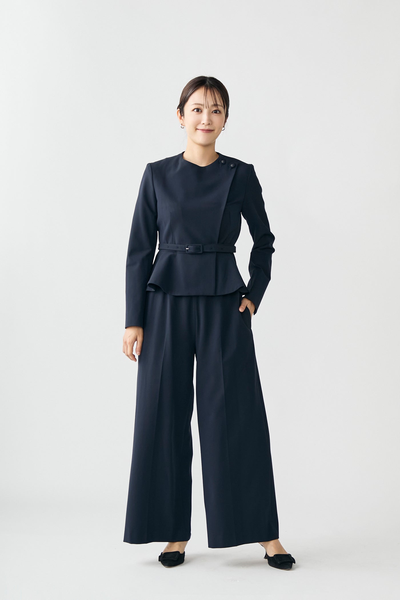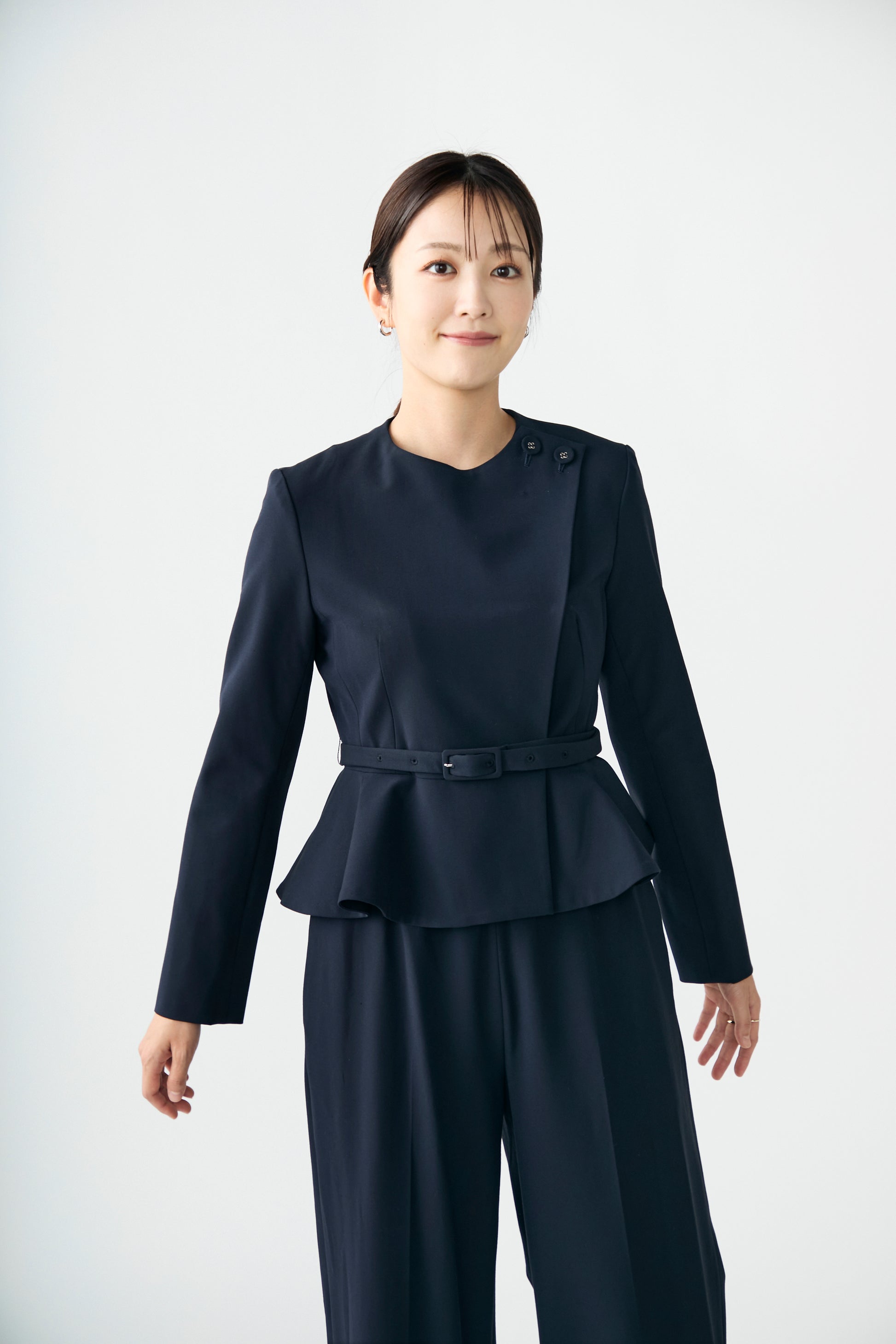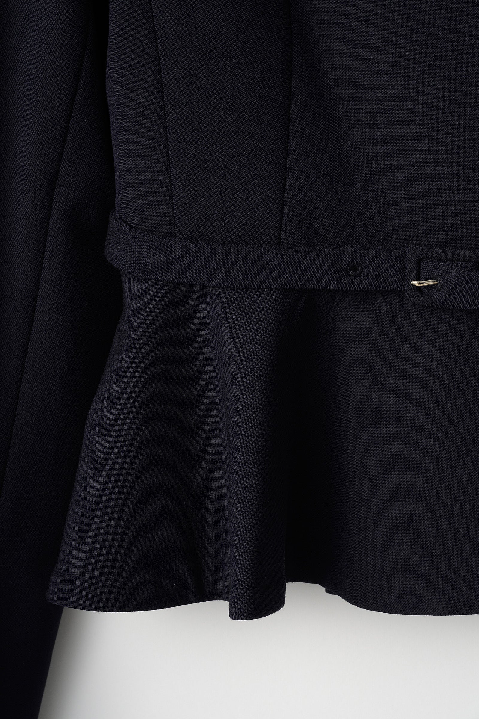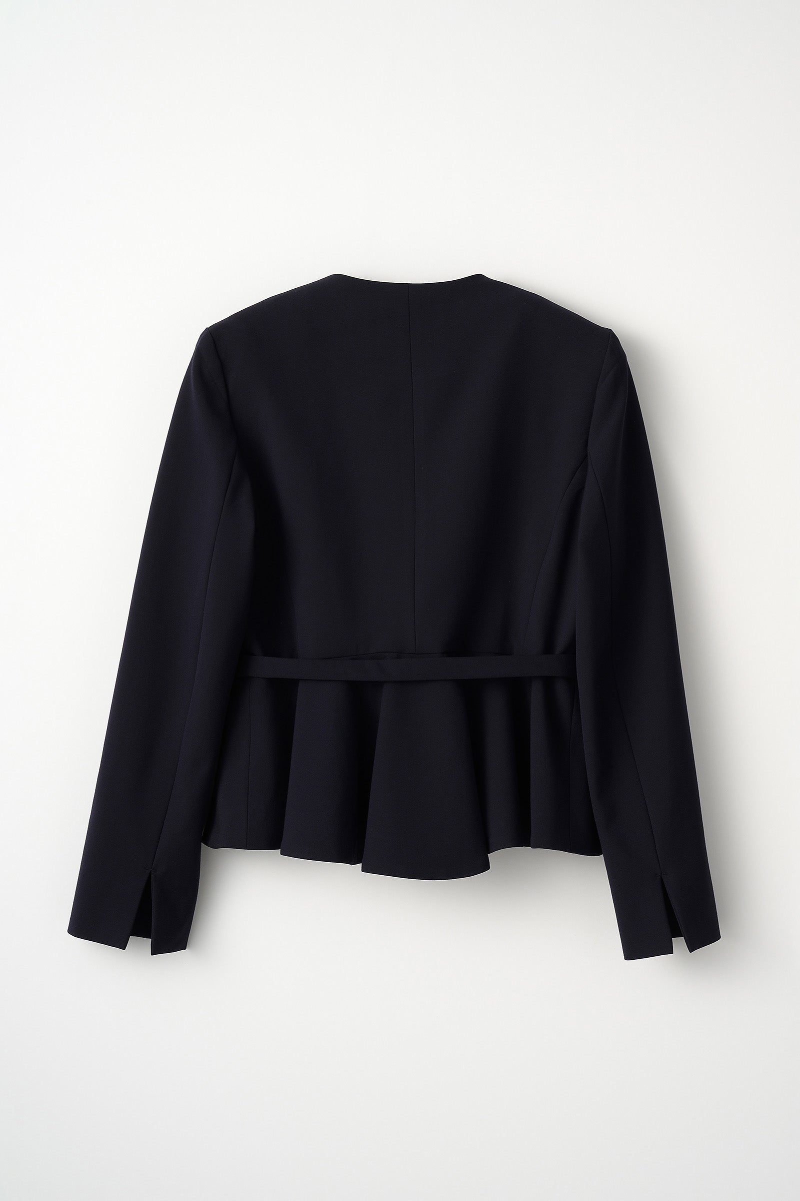 立体感のあるペプラムラインが、女性らしさを引き立てるジャケット。