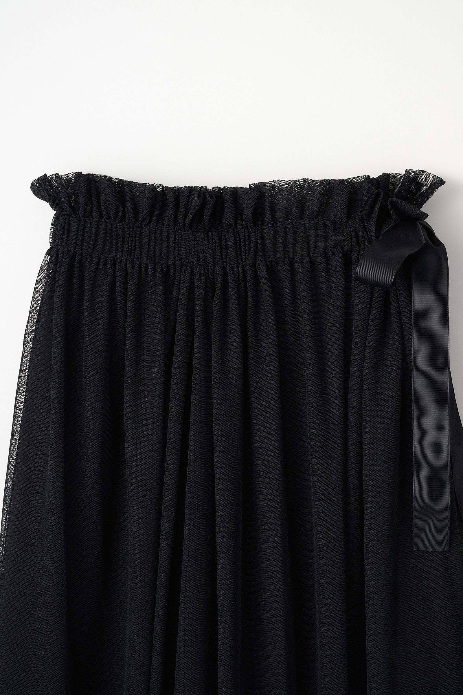 チュールスカートにはベルト通しがついており、ウエストでリボン結びができる仕様に。