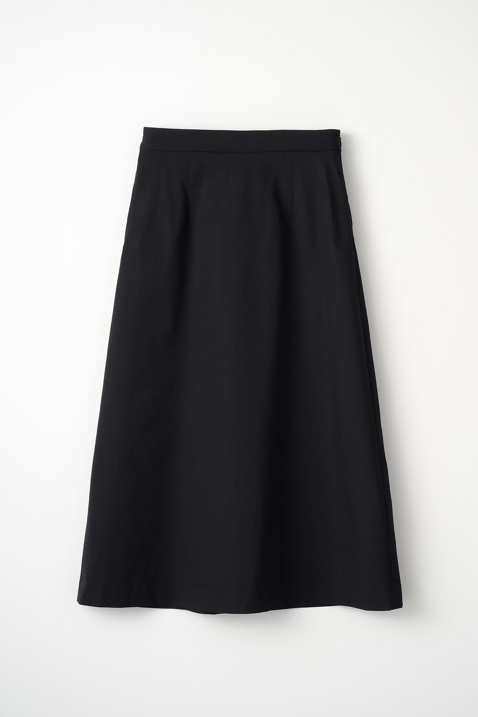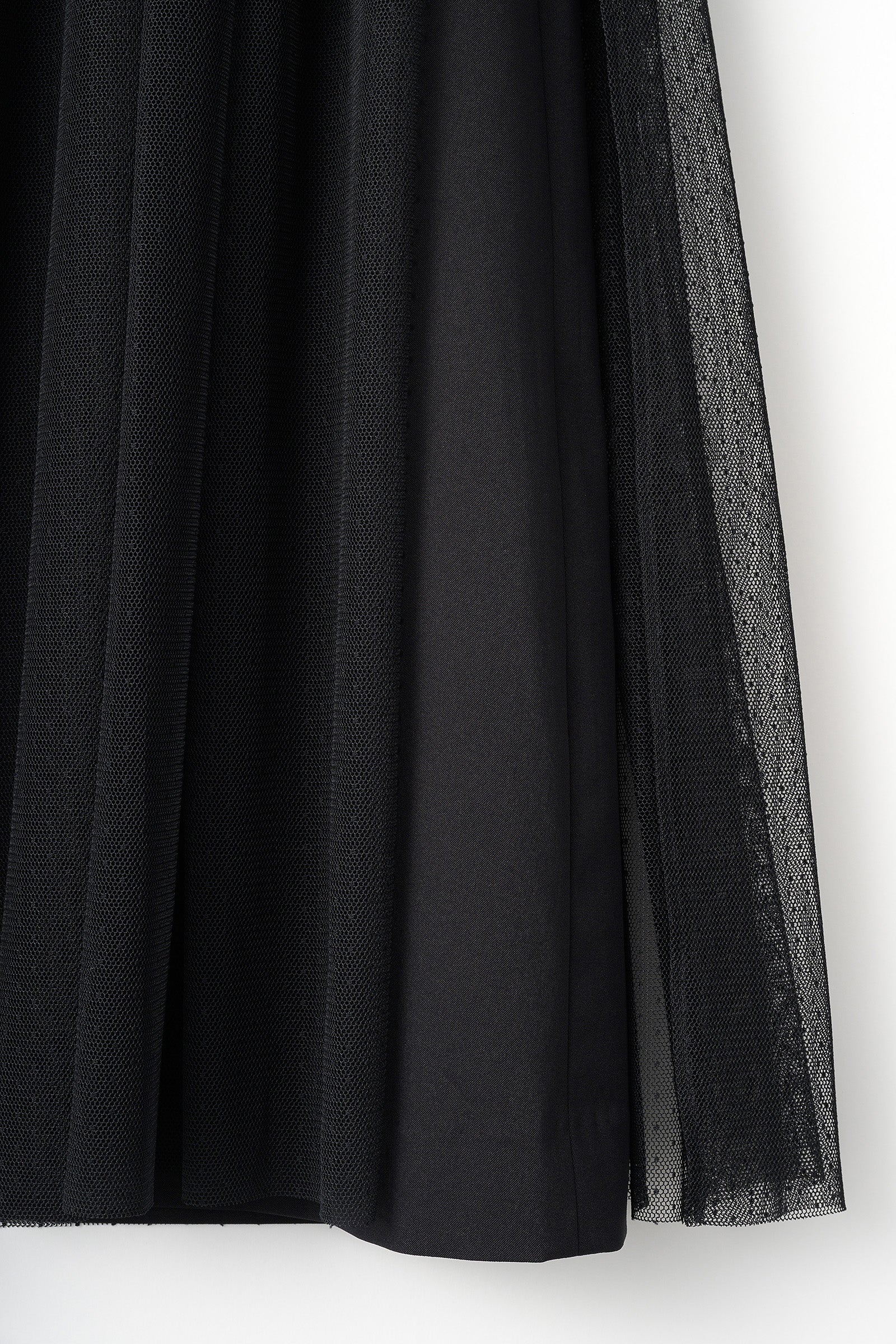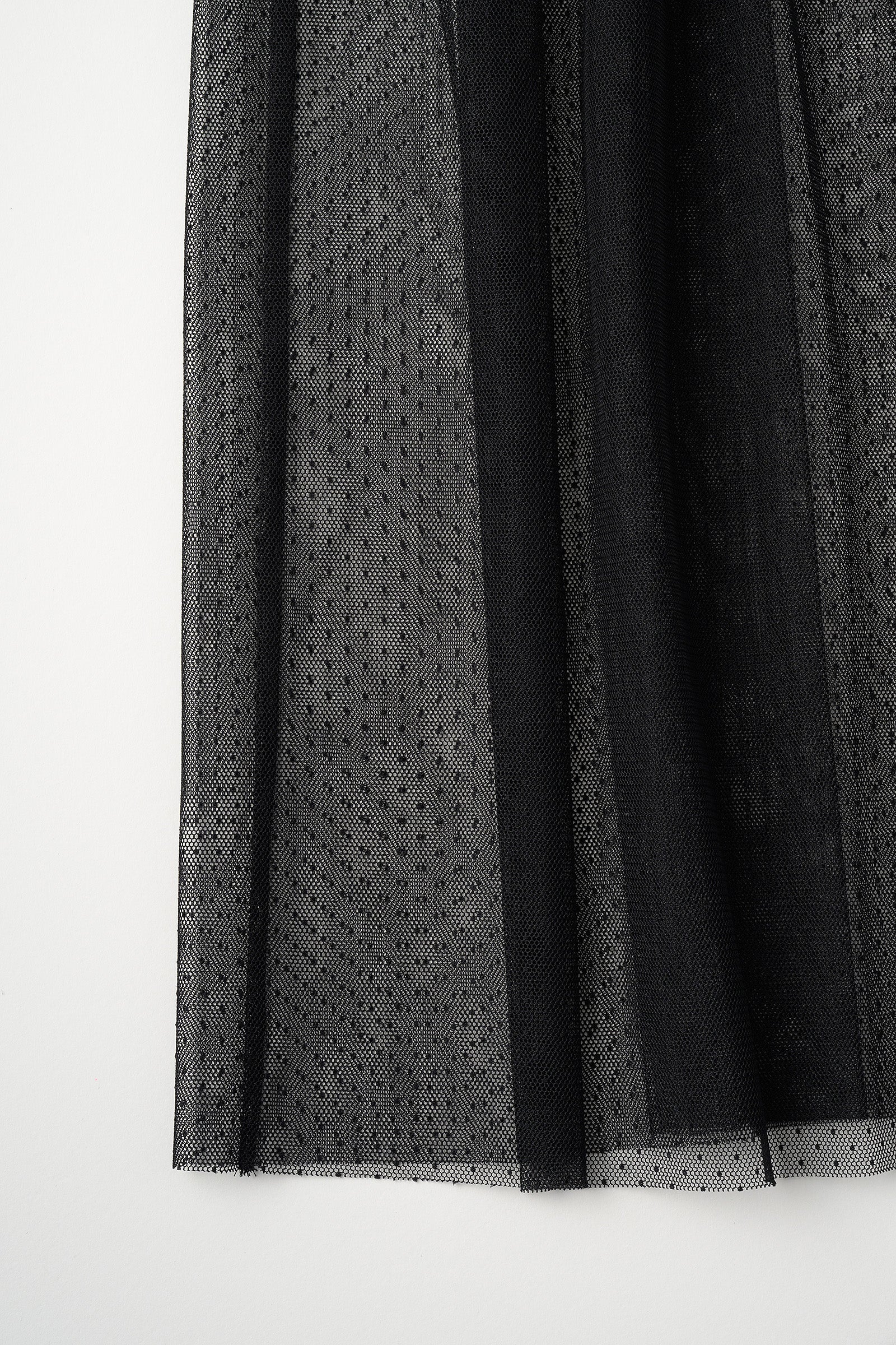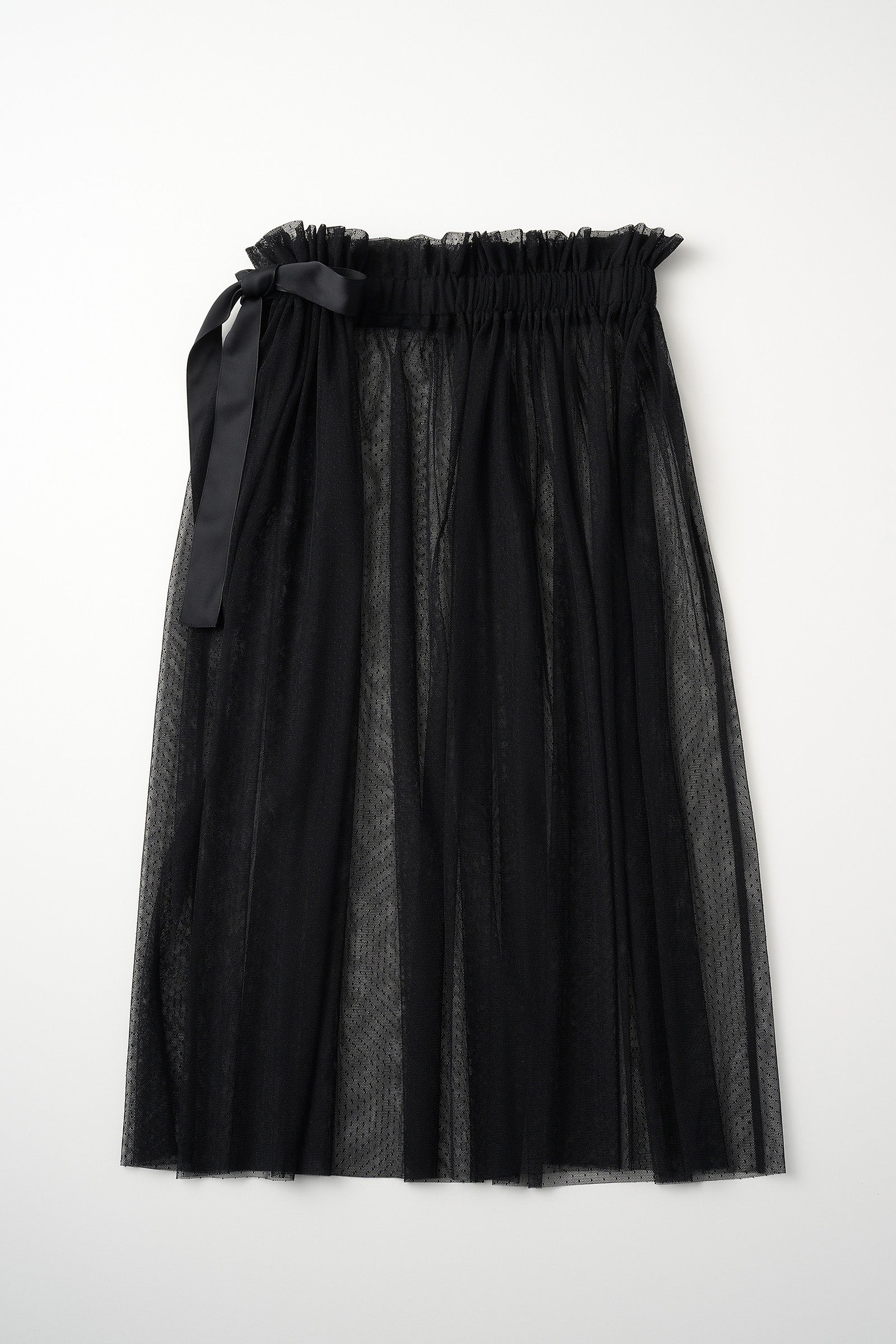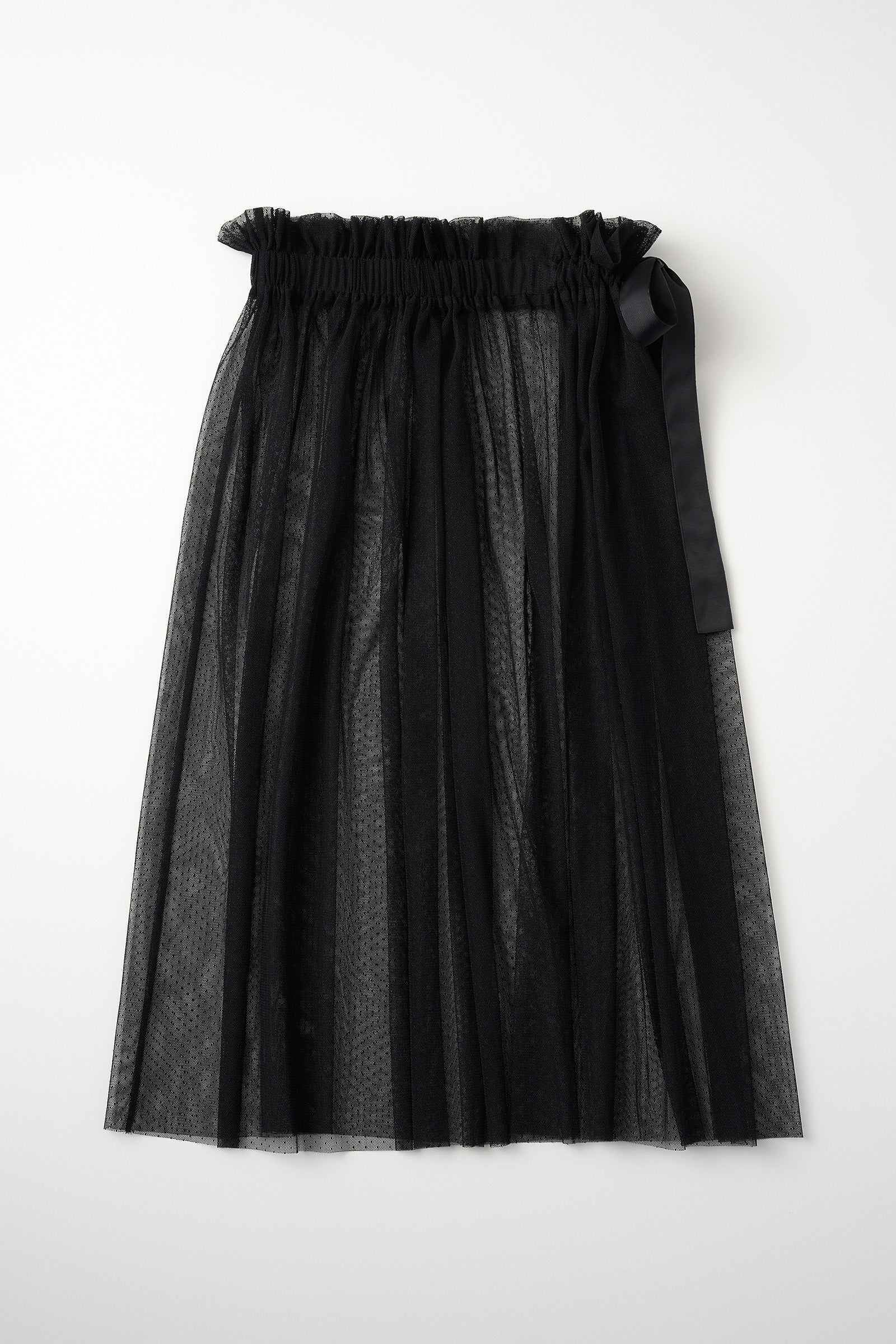 無地のストレッチスカートに、ドットチュールの巻きスカートを重ねた2wayデザインのAラインスカート。