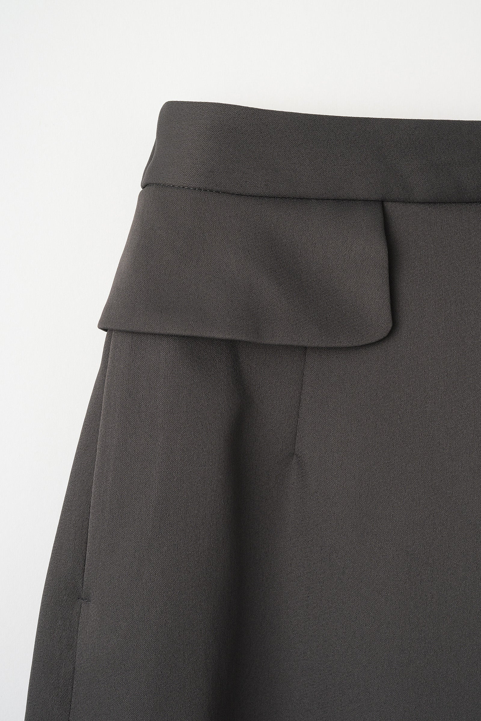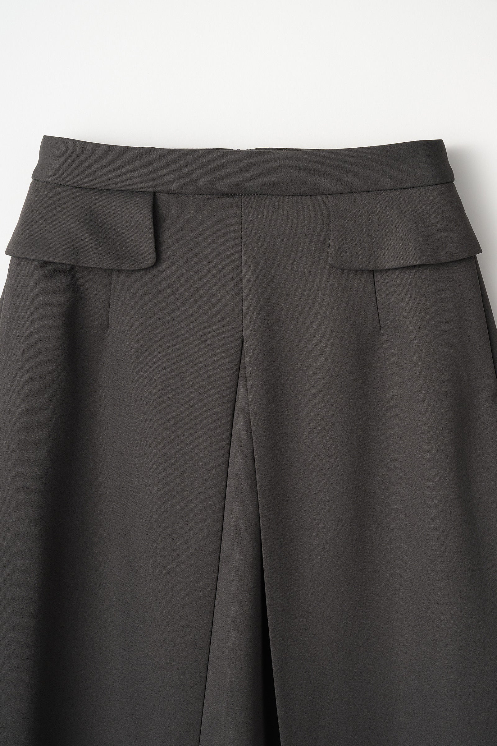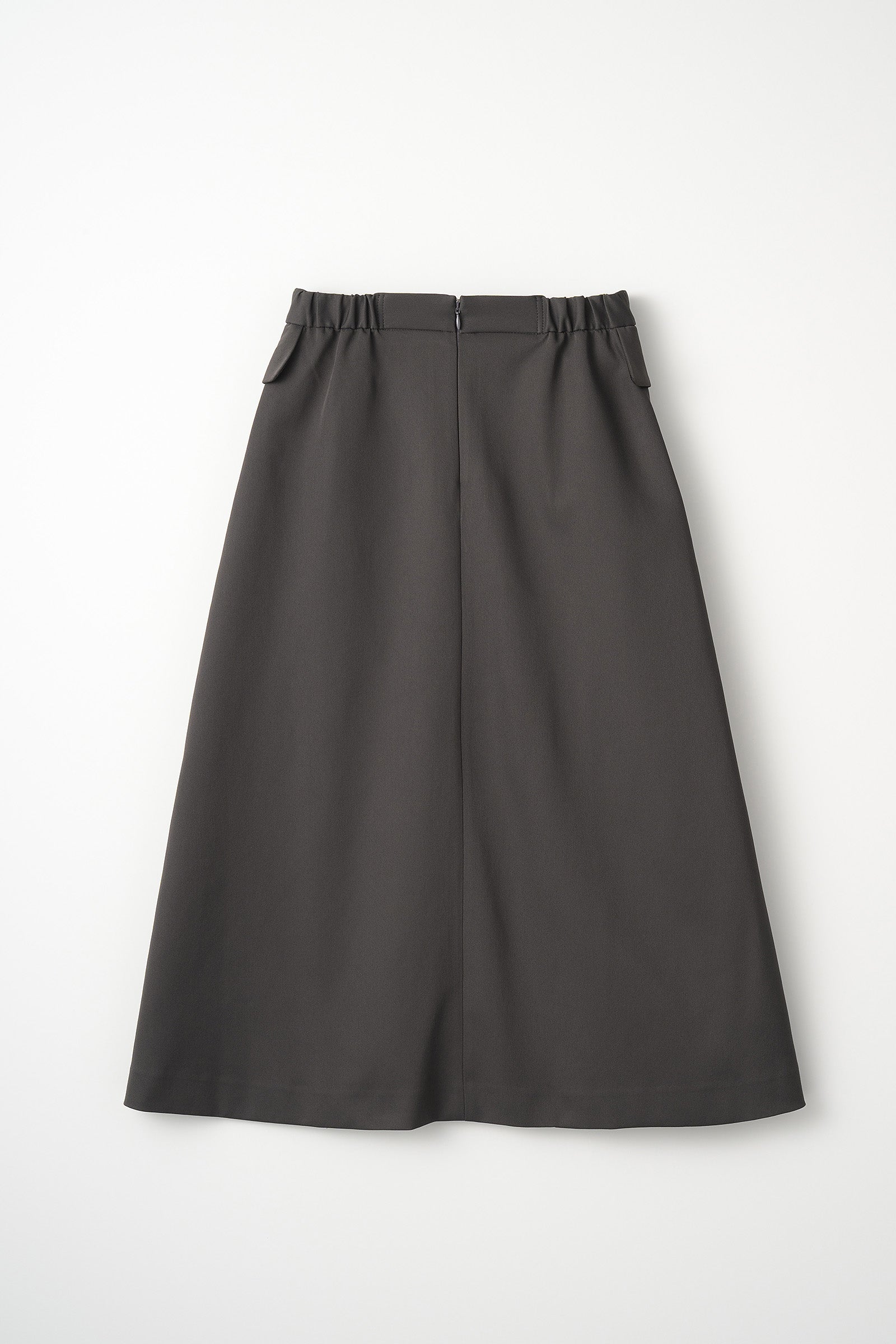フロントにあしらったフラップポケットと、ベルトラインから斜めに施されたカットワークがアクセントのミディスカート。