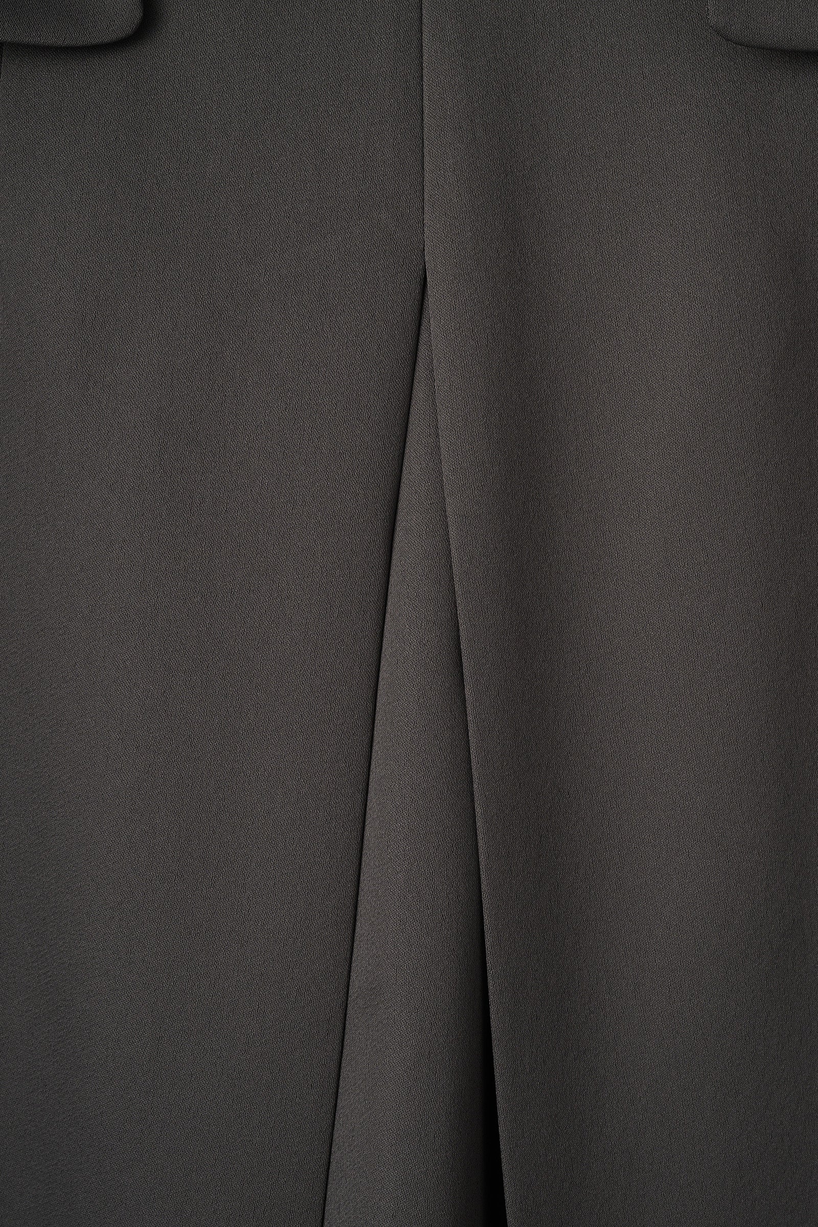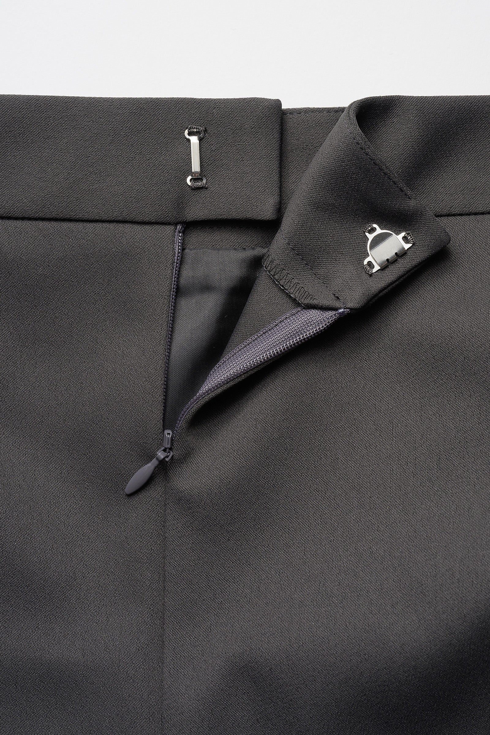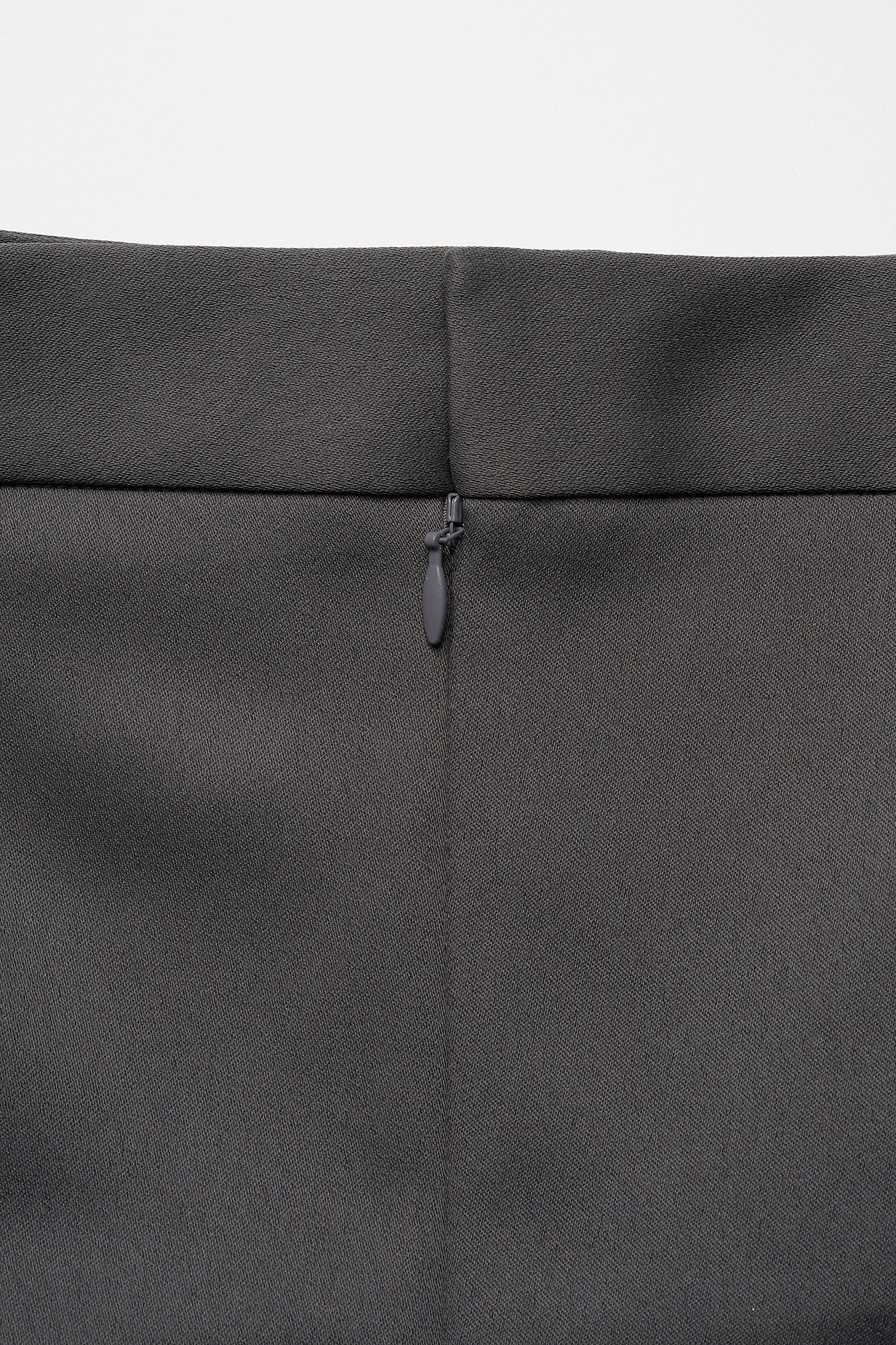 フロントにあしらったフラップポケットと、ベルトラインから斜めに施されたカットワークがアクセントのミディスカート。