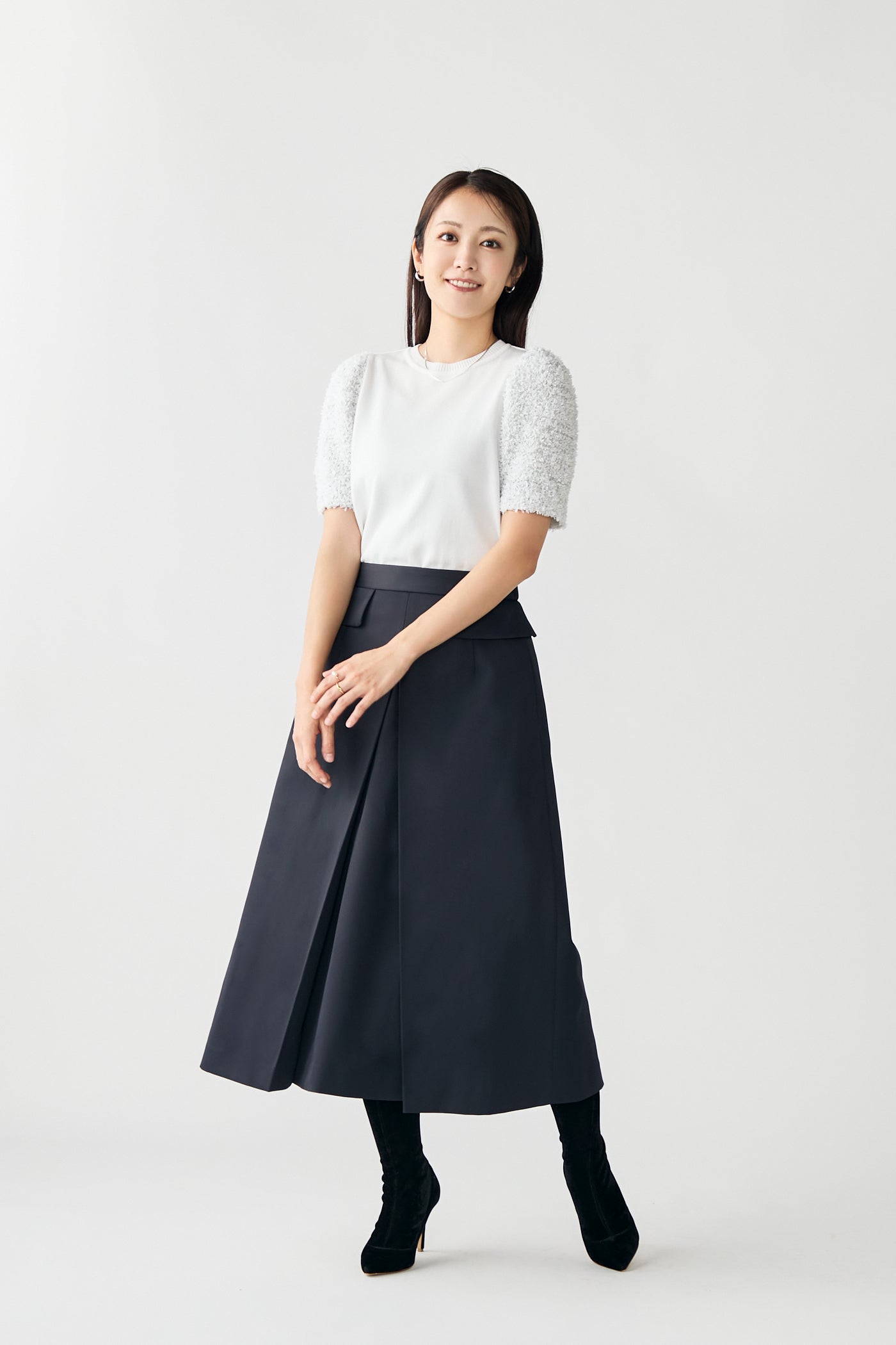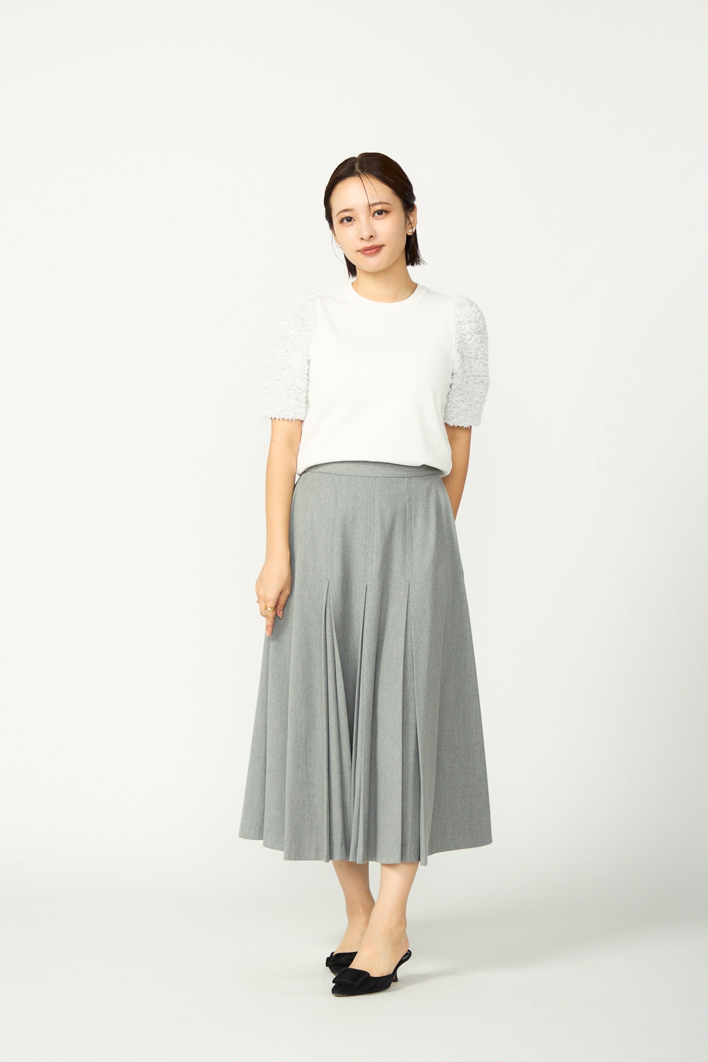 ニット生地に糸を編み込み、ふんわりとボリュームのある袖が特徴的。