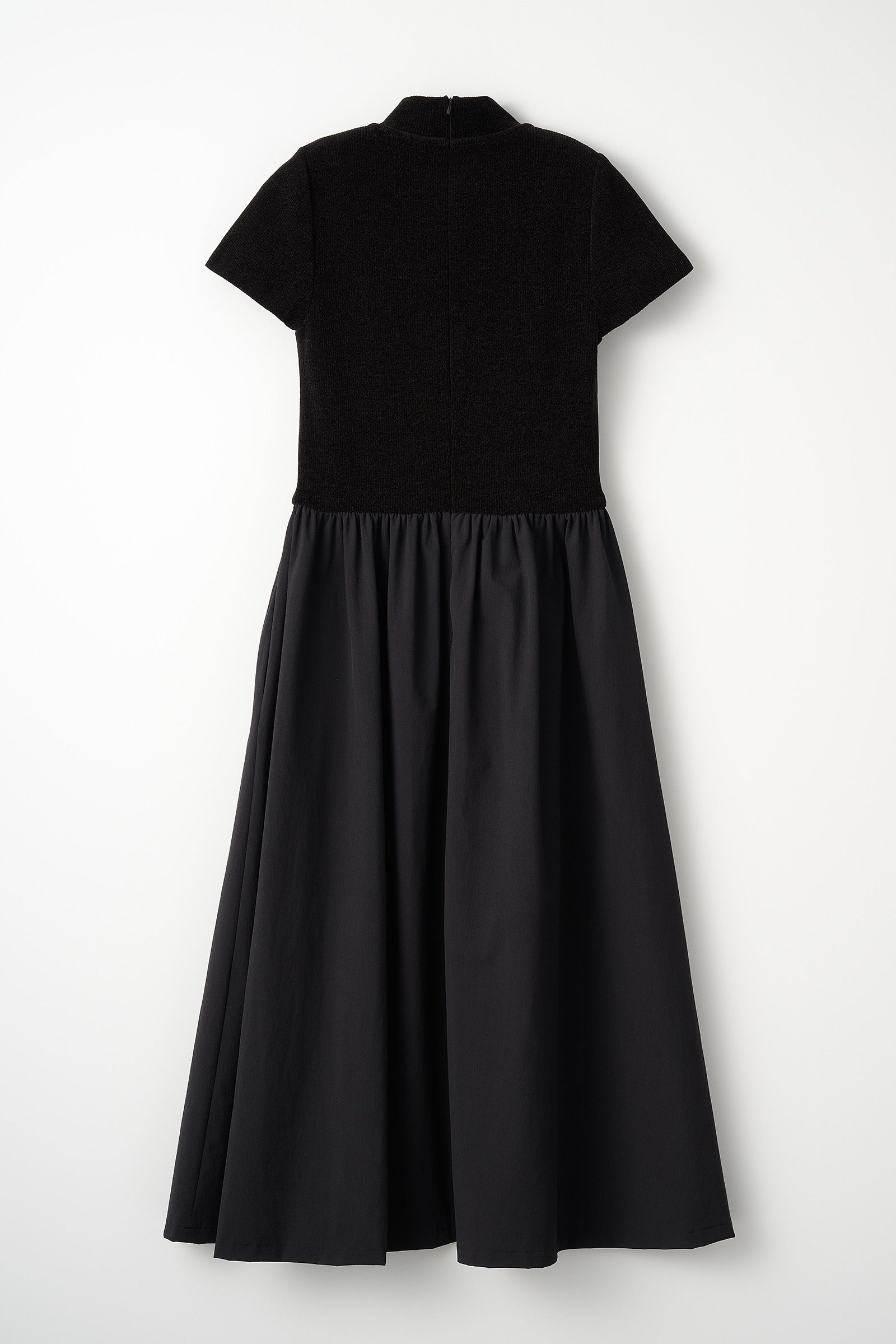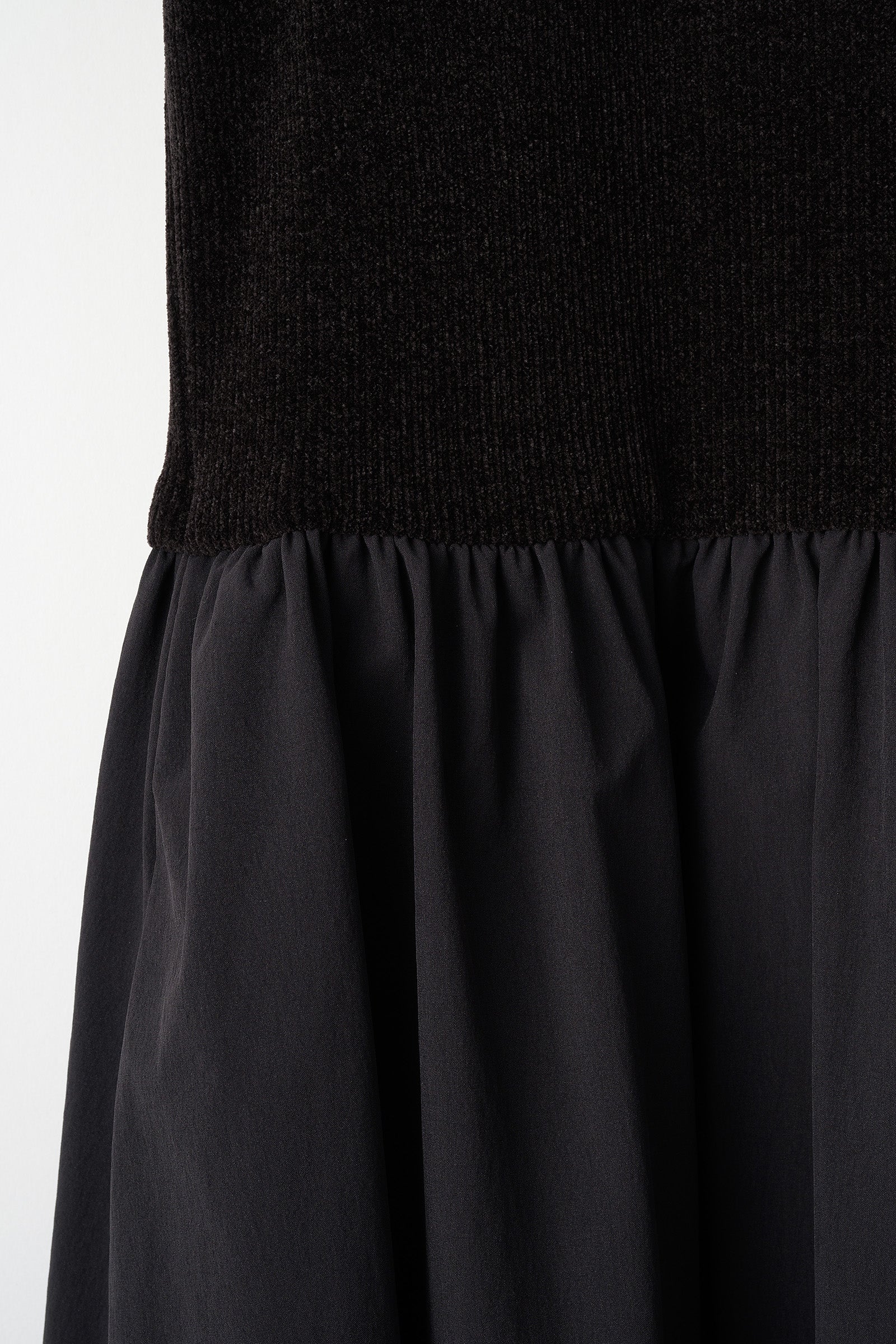 上身頃はベロア調のニット素材、スカート部分は布帛素材を使用した異素材のドッキングワンピース。
