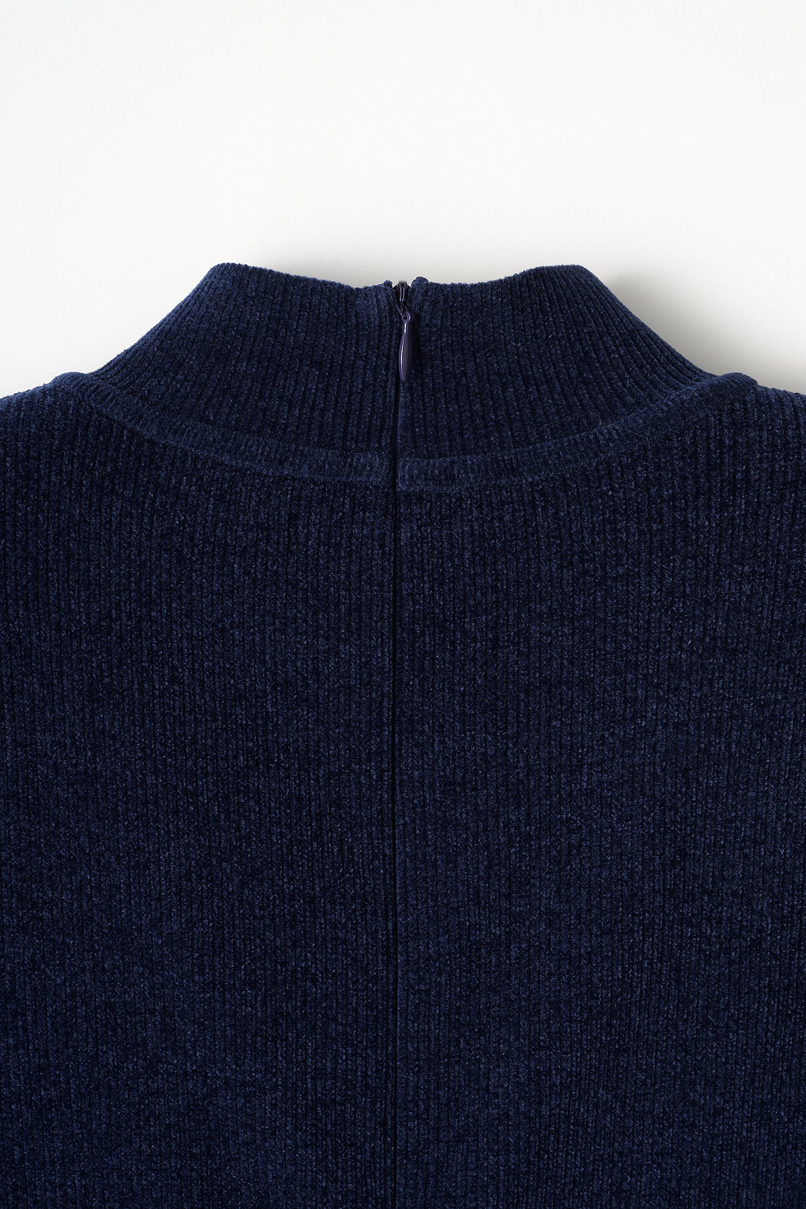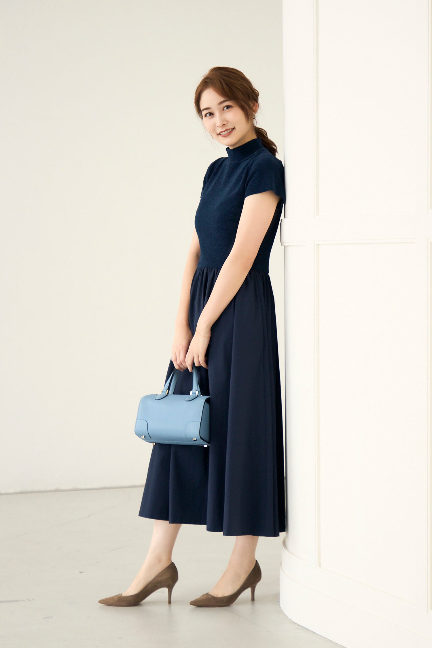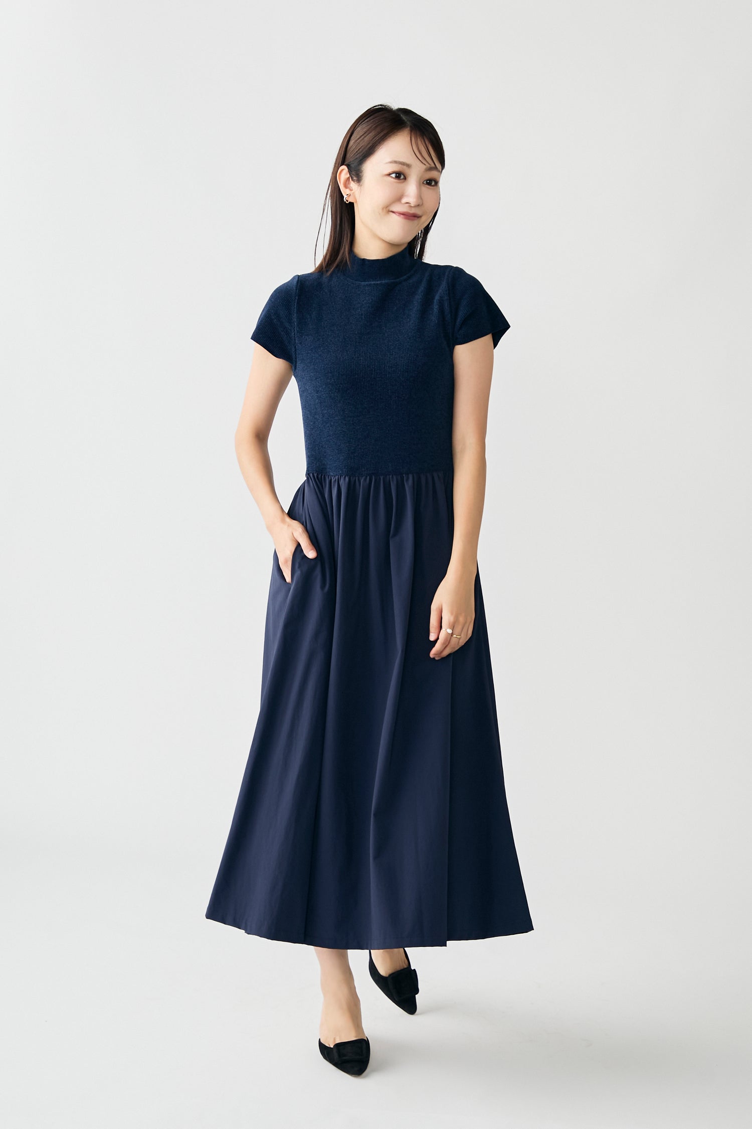 上身頃はベロア調のニット素材、スカート部分は布帛素材を使用した異素材のドッキングワンピース。