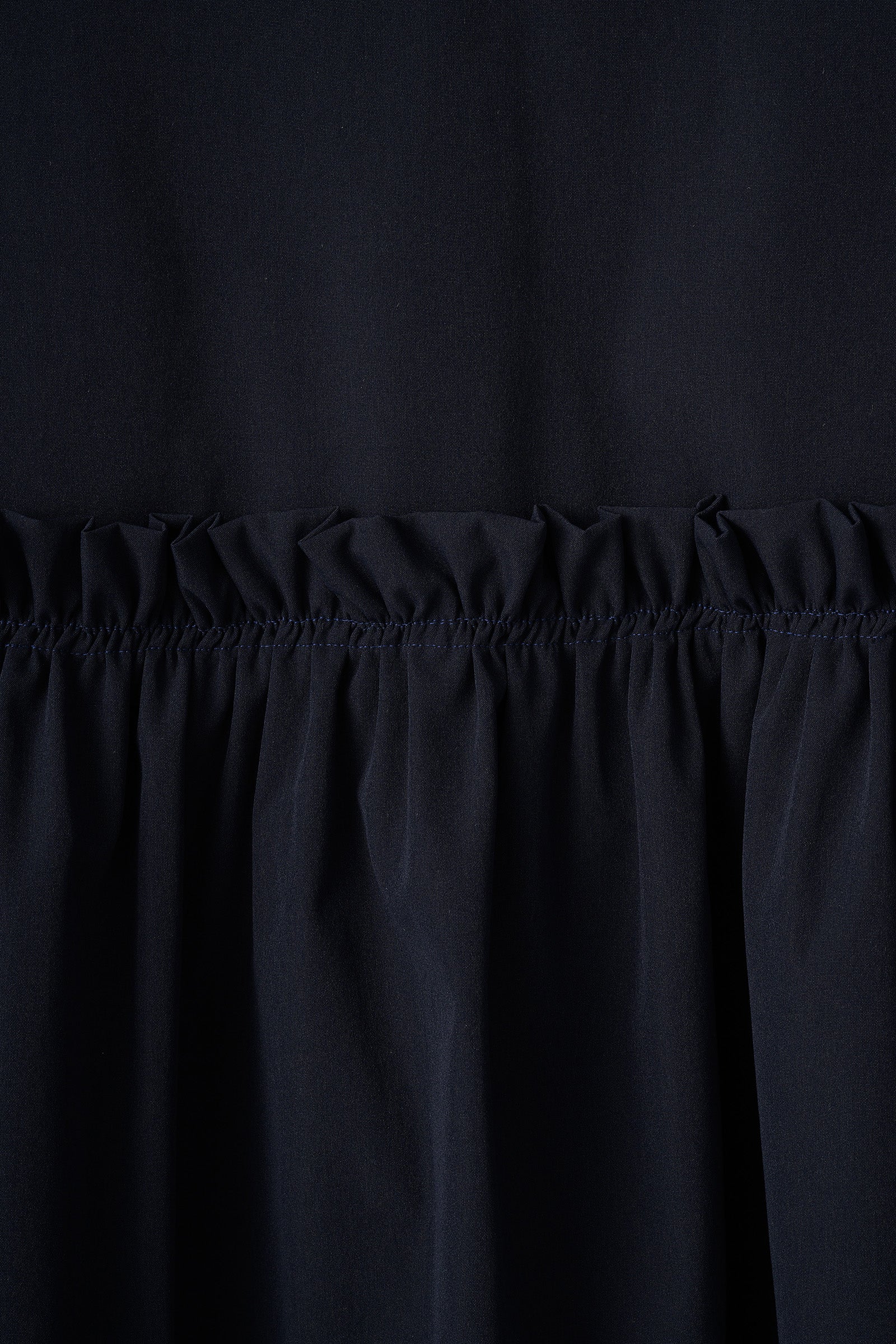 胸下にギャザーを寄せた切り替えから、ふわりと広がるフレアラインが特徴のブラウス。