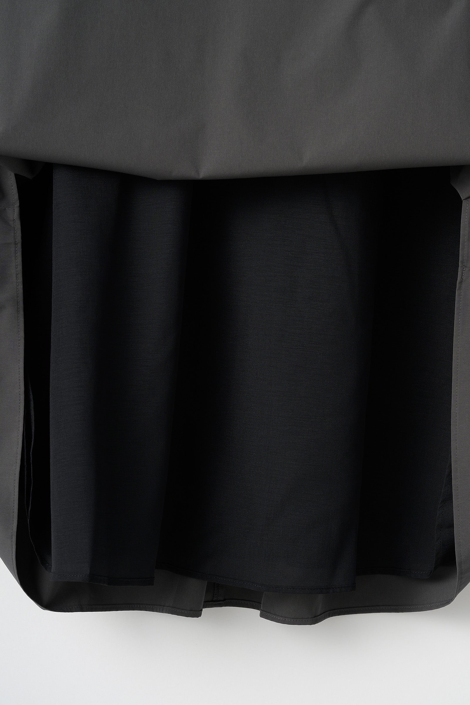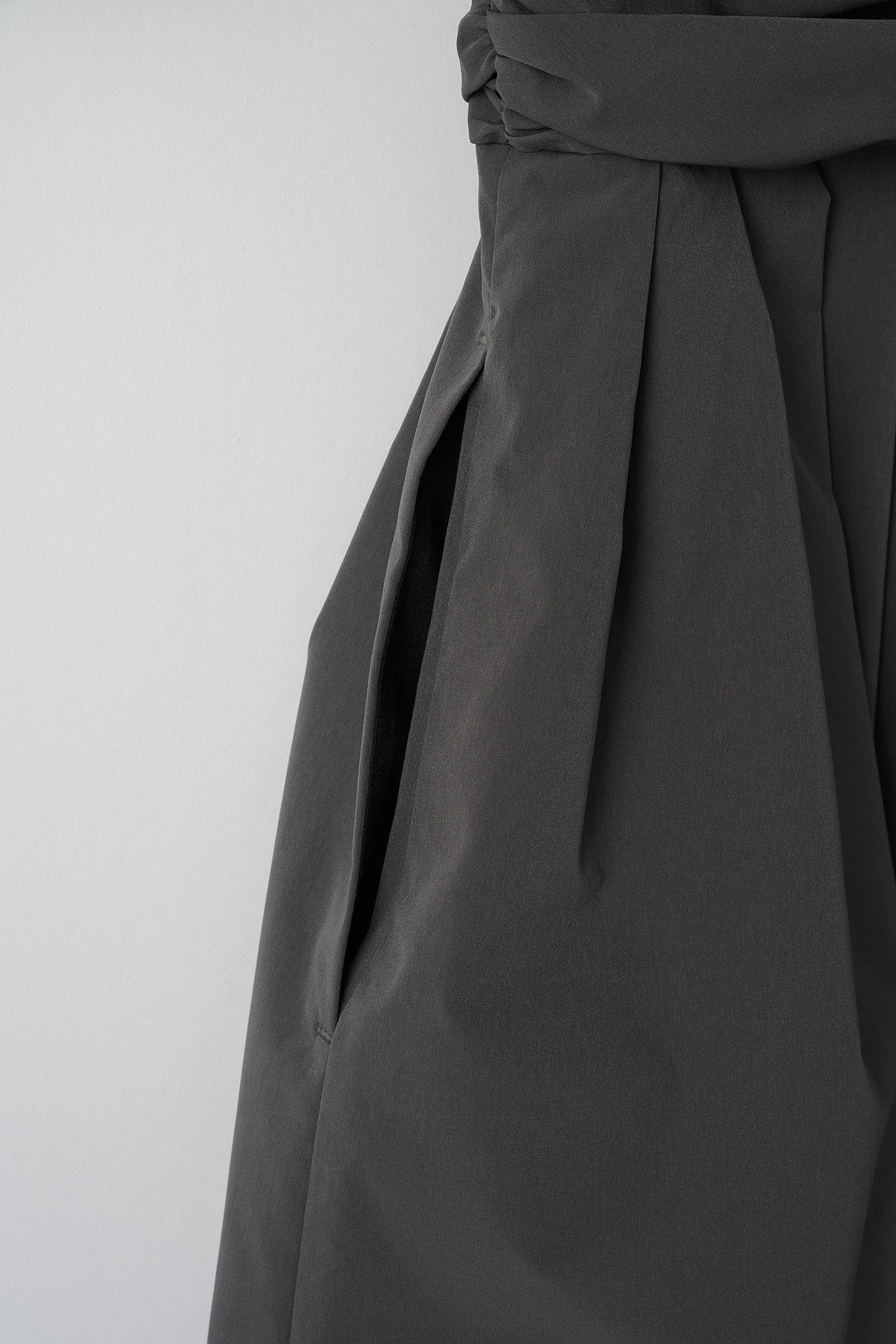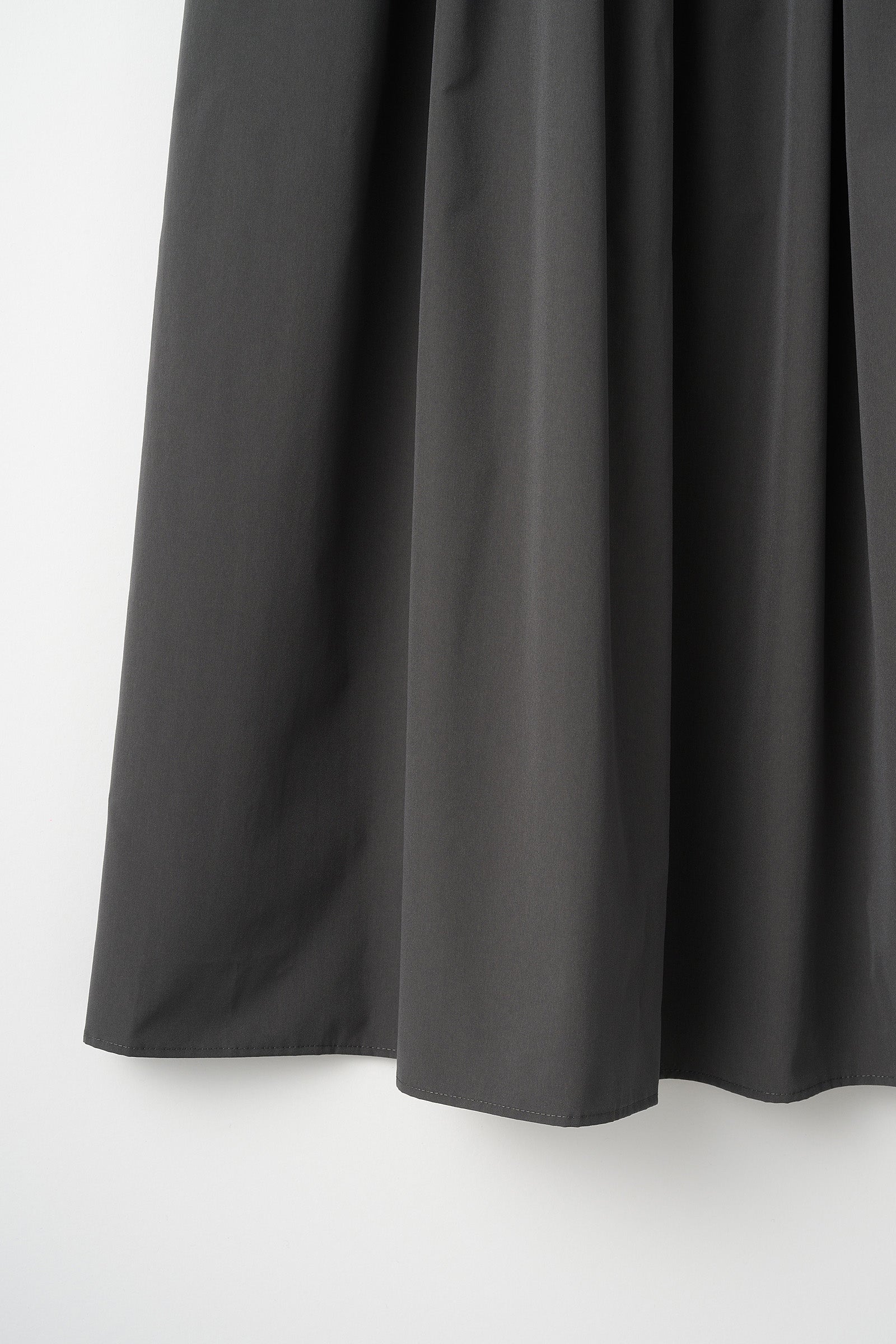 ウエストから裾にかけてはタックを施し、自然な広がりのあるフレアシルエットに仕上げています。