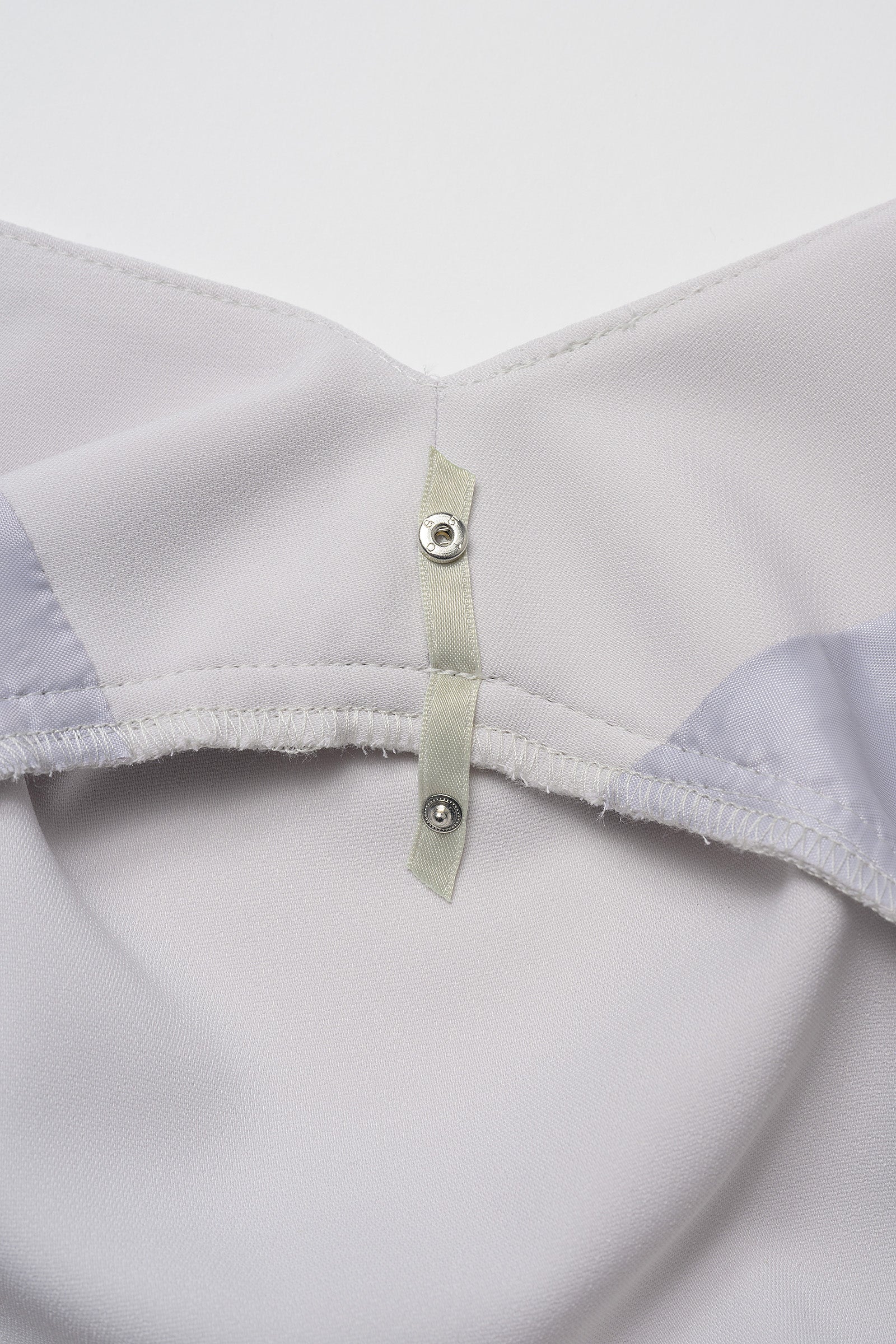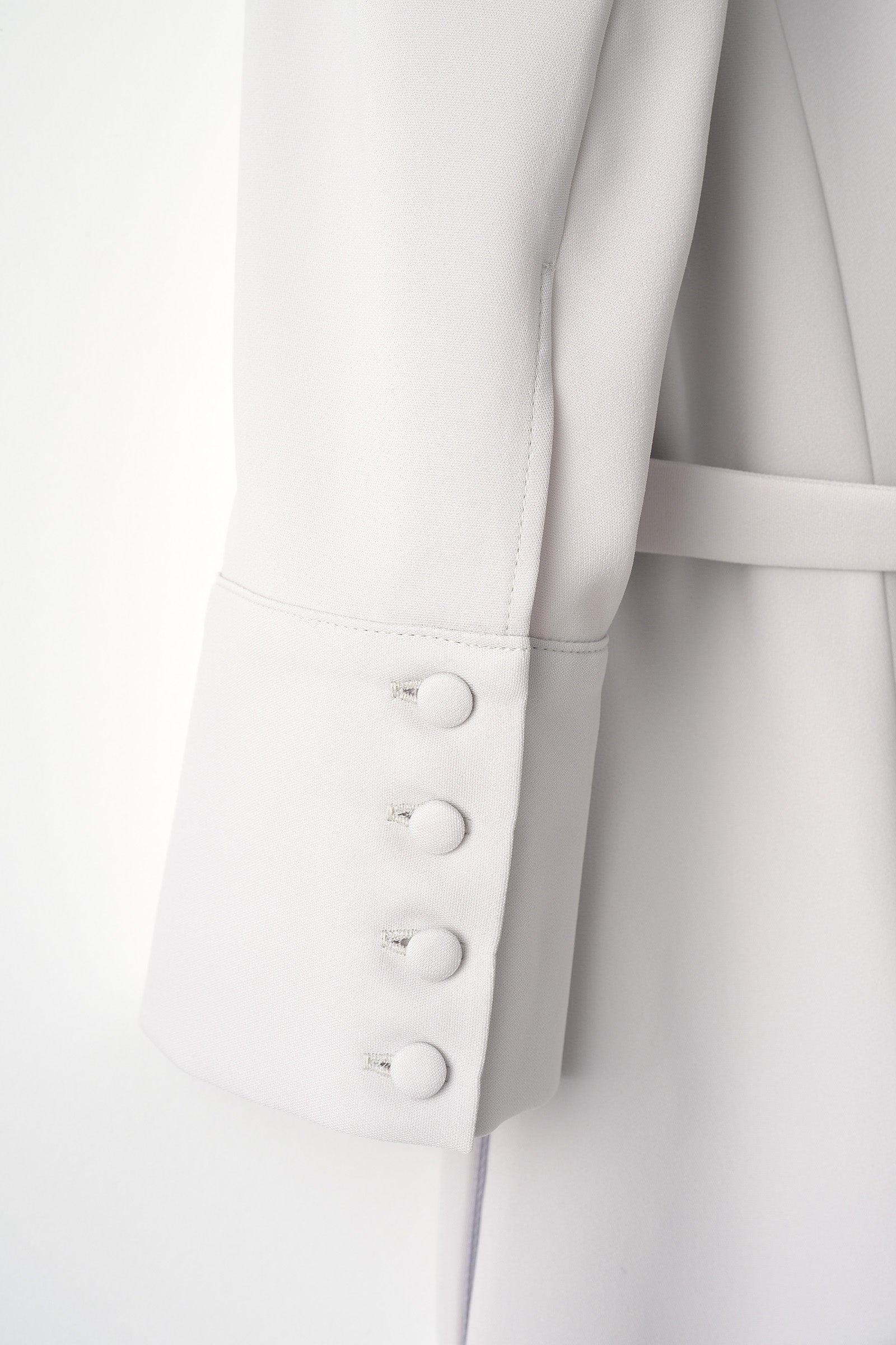 肩にはスリップ止めがついており、七分丈の袖にはくるみボタンが添えられています。