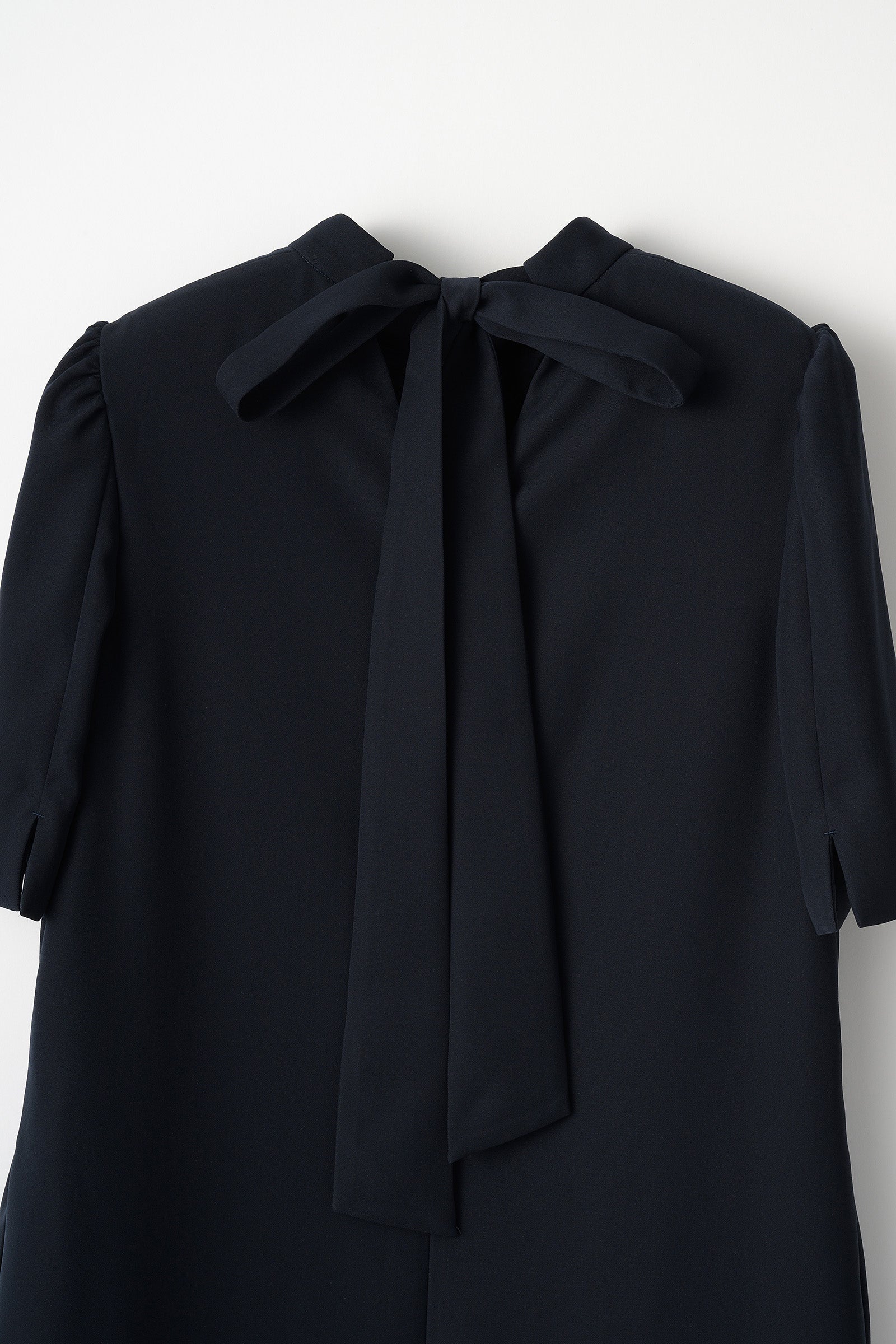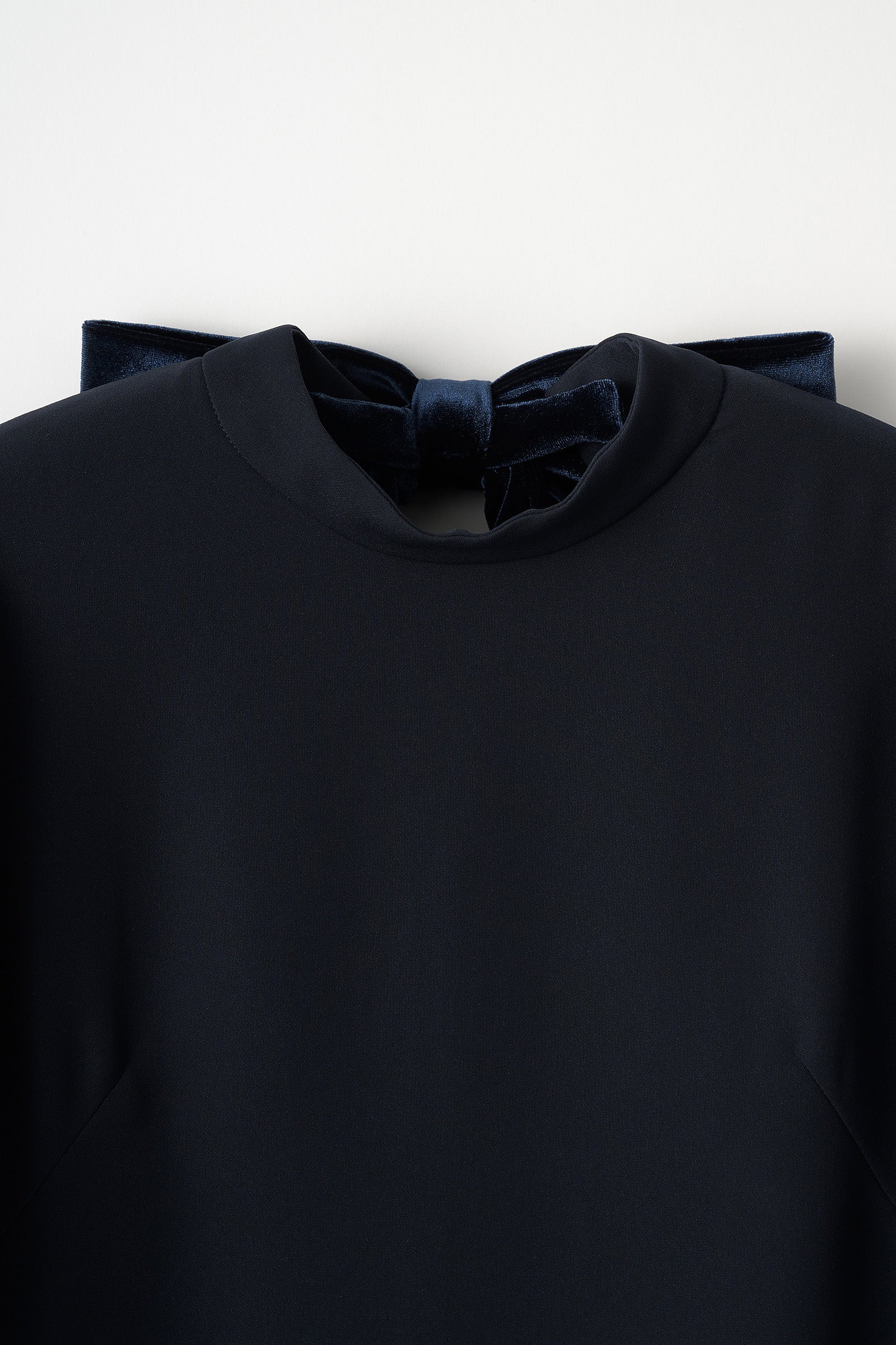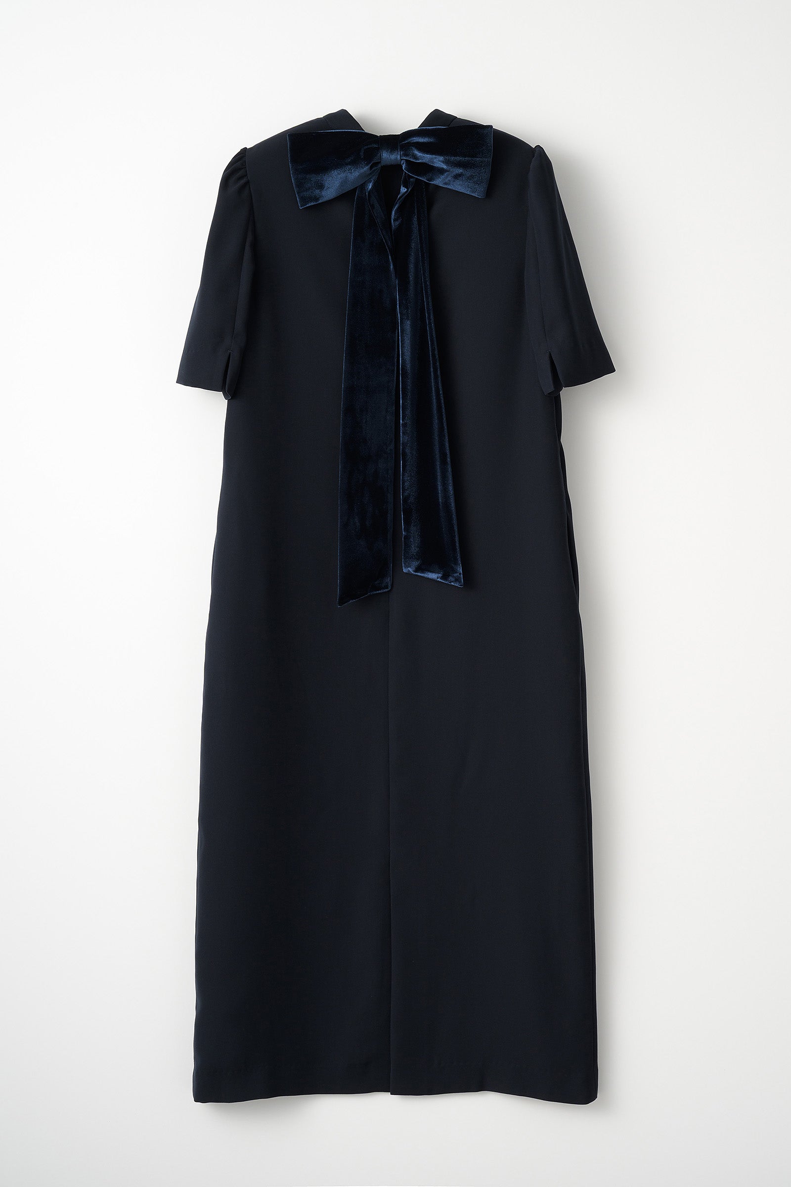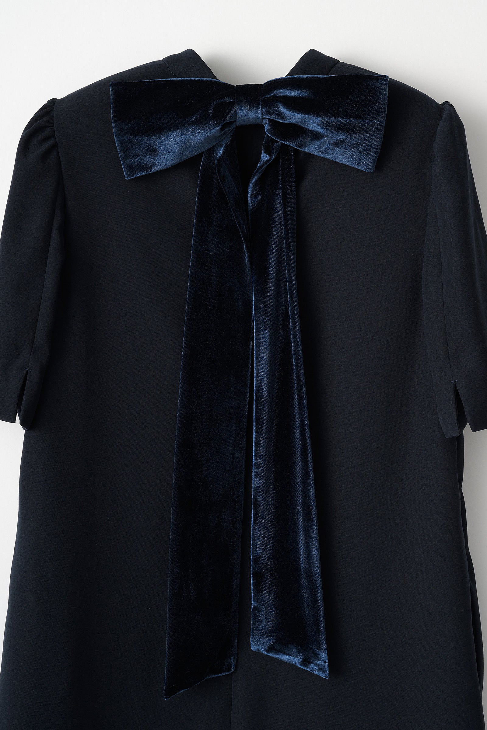 ブラックのリボンは光沢感のあるベロア素材で、さりげないアクセントに。