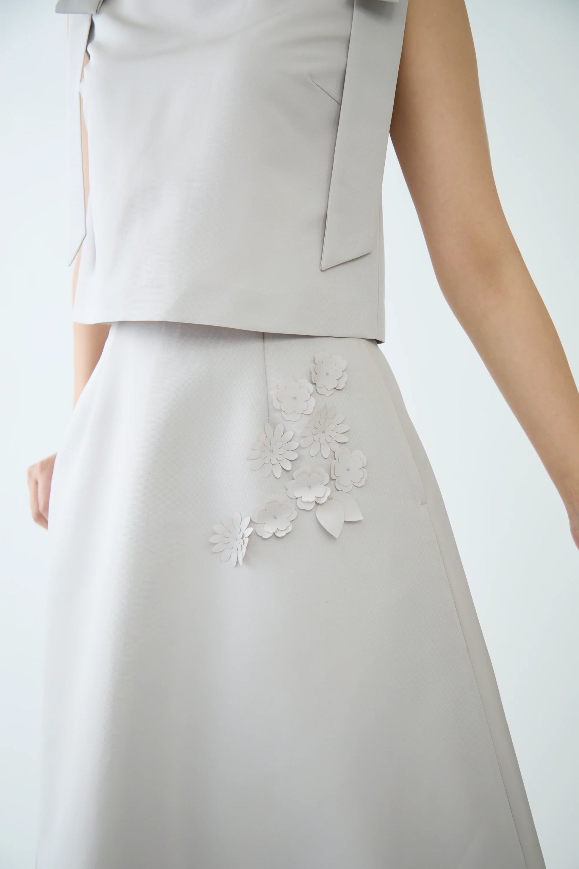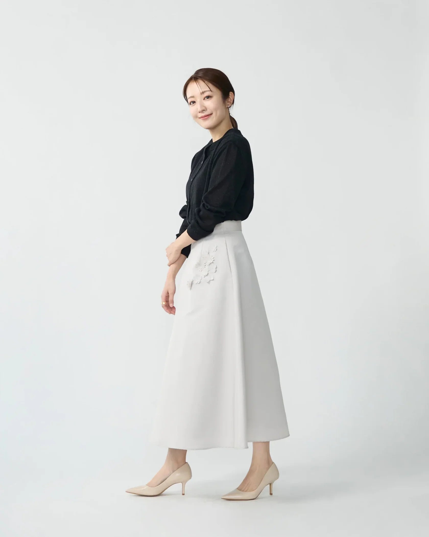 2ndのGrosgrain circular skirtに同素材の花のモチーフをあしらい華やかさをプラスしたスカート。