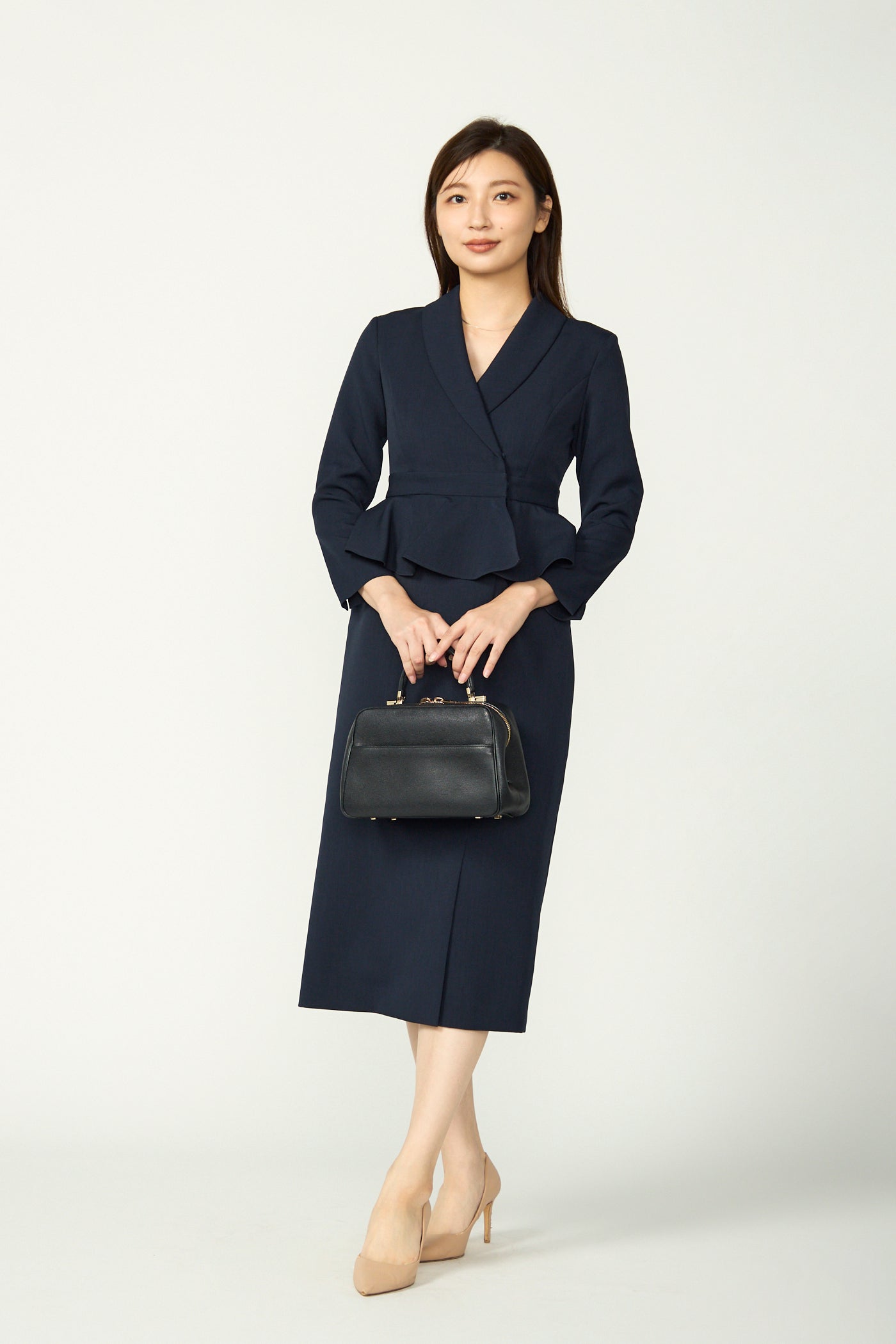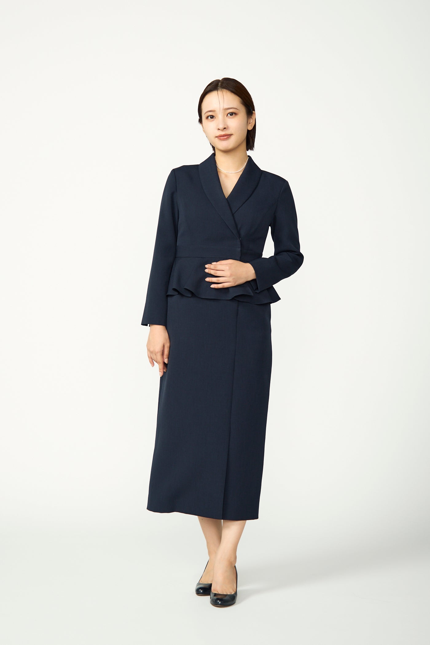 両サイドにポケットがあり、スカート部分はフロントにスリットが入っています。