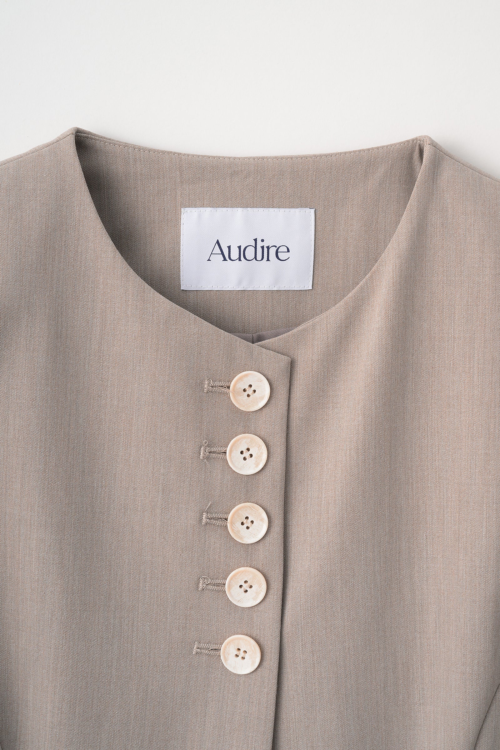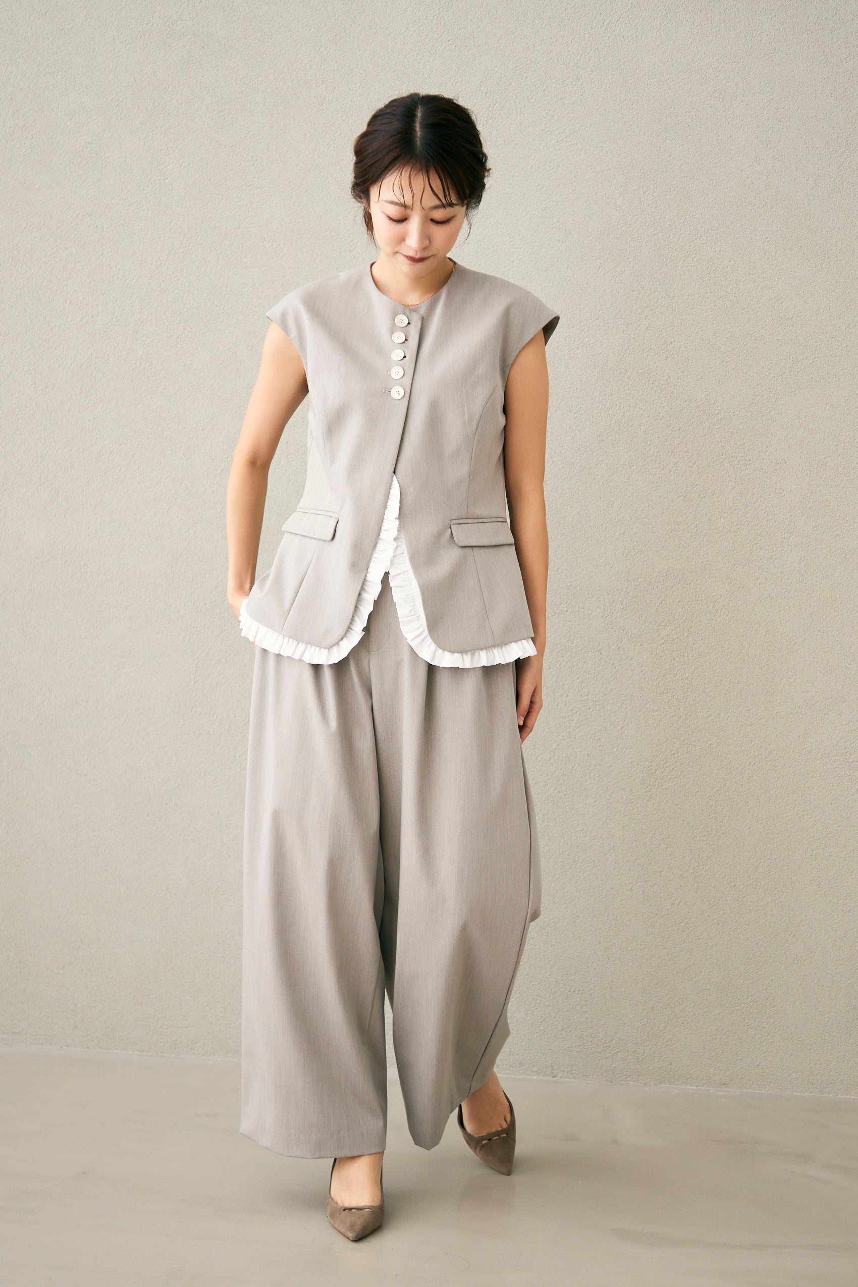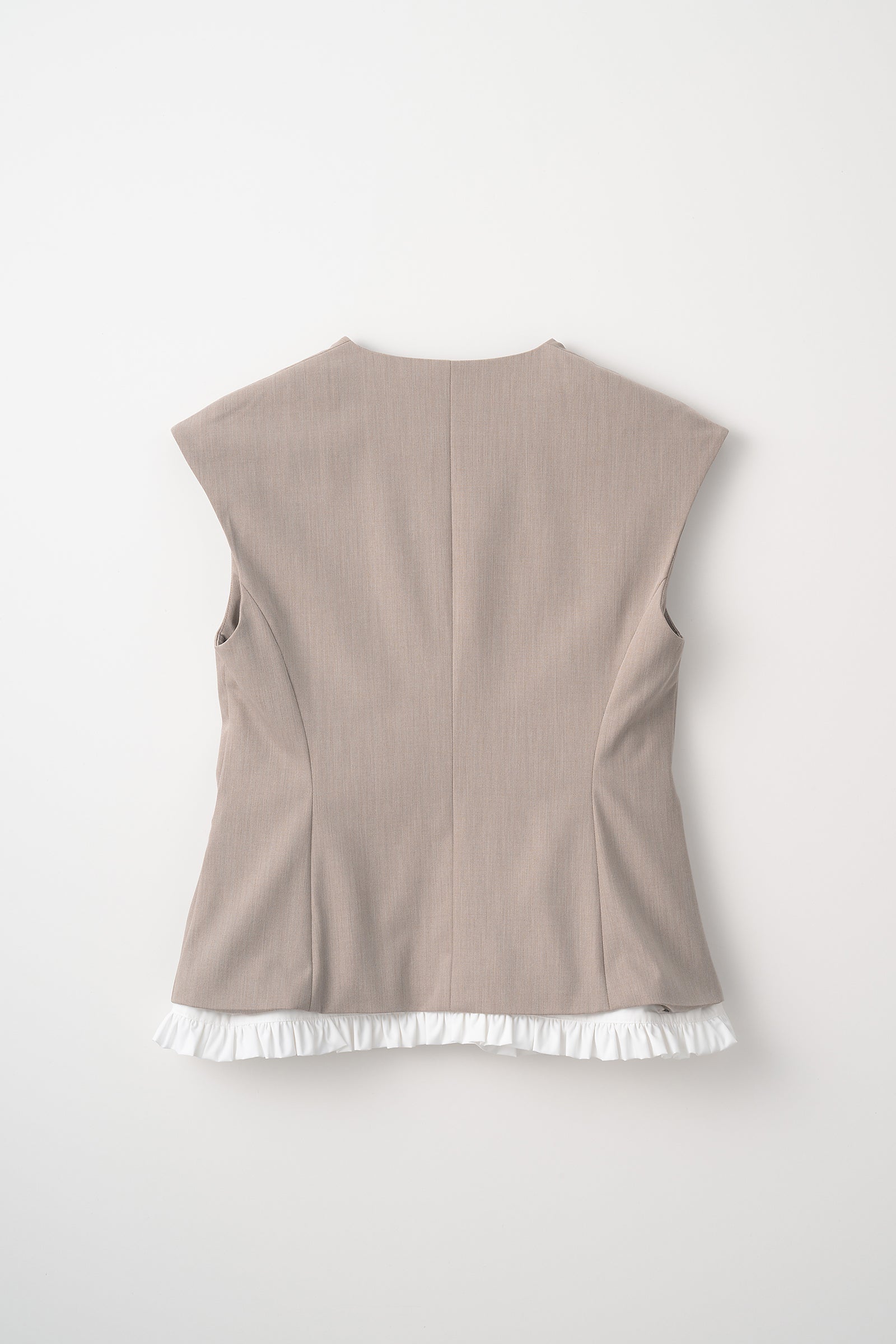 上身頃に連なる釦ボタンが印象的なノースリーブベスト。