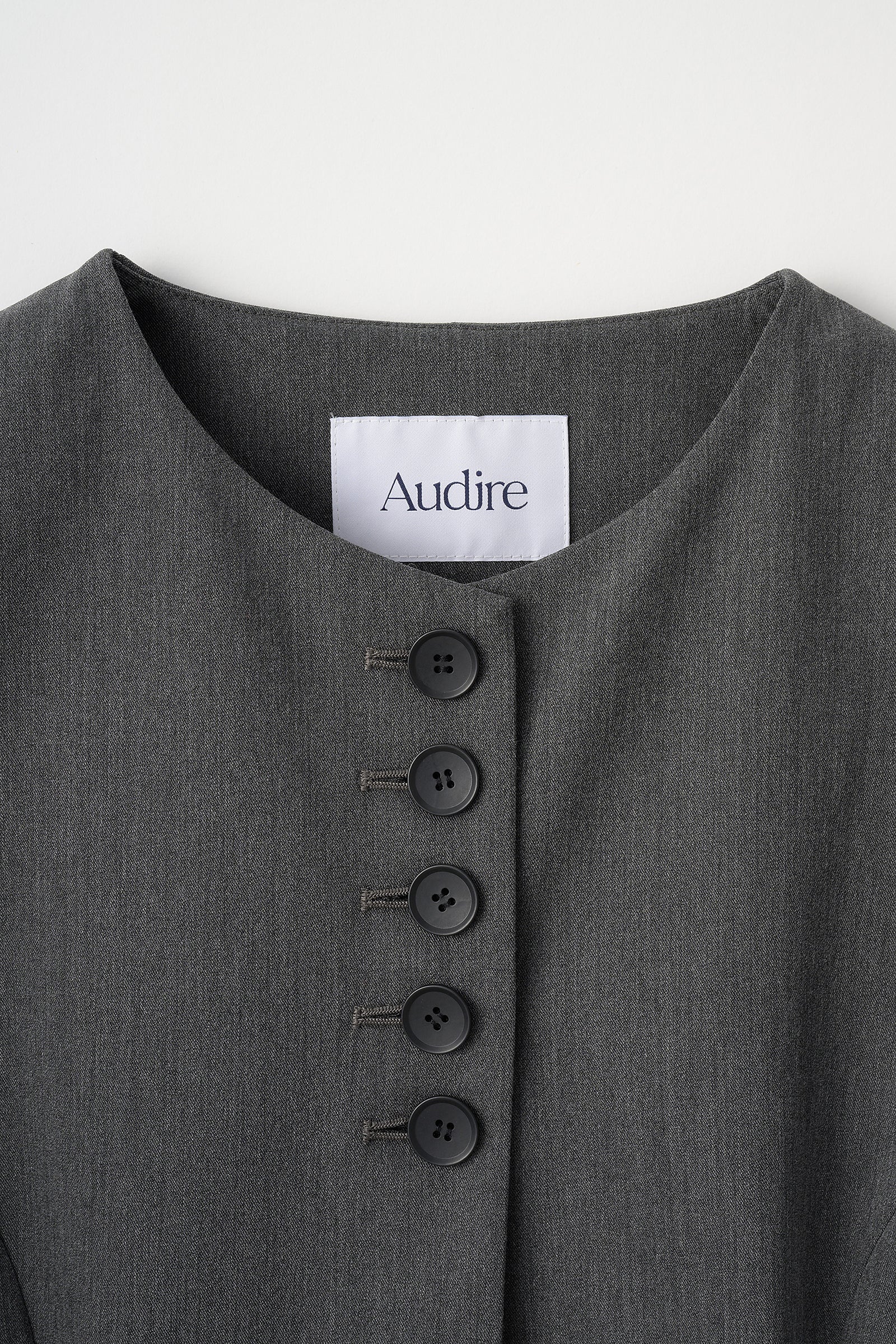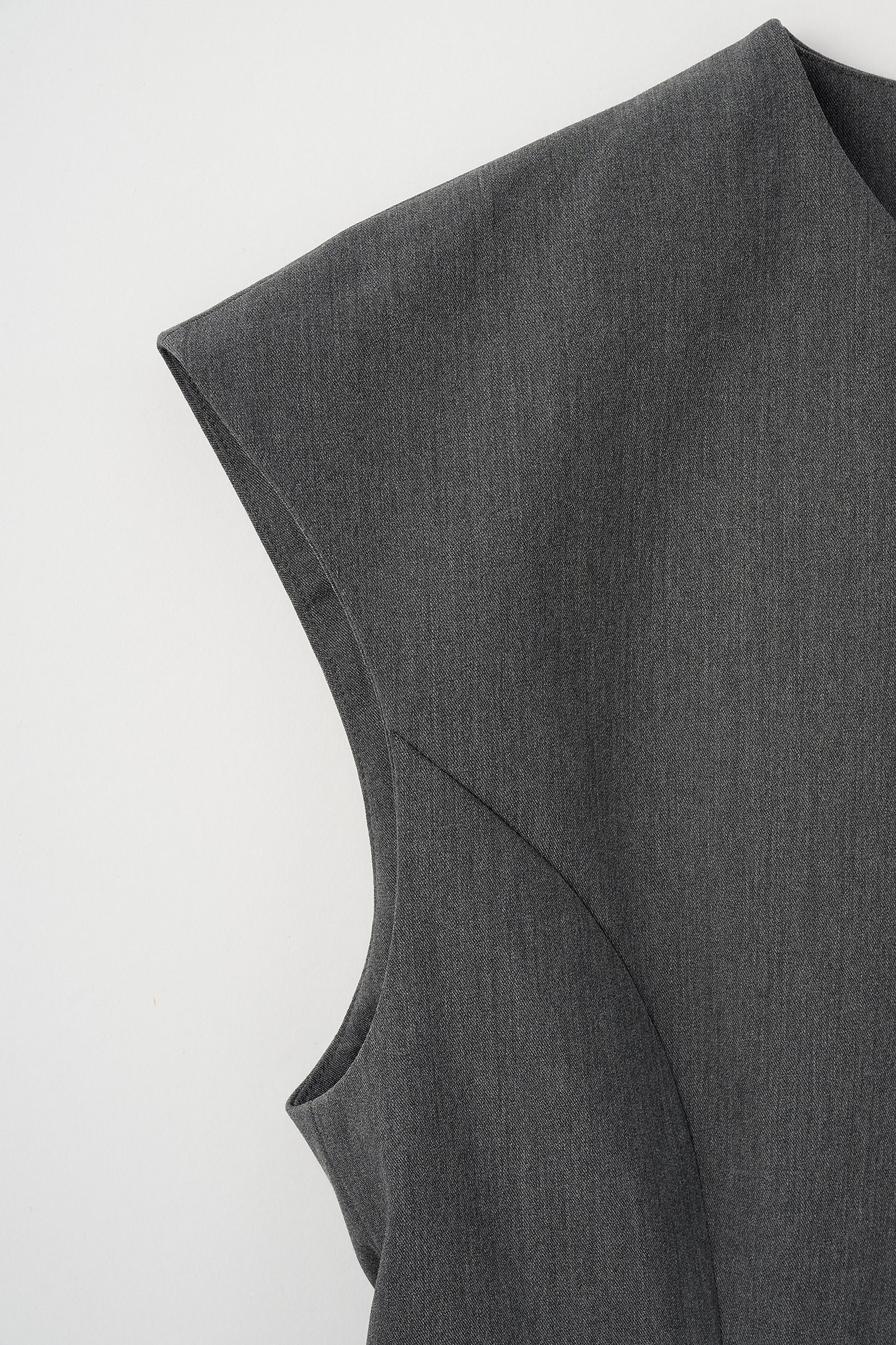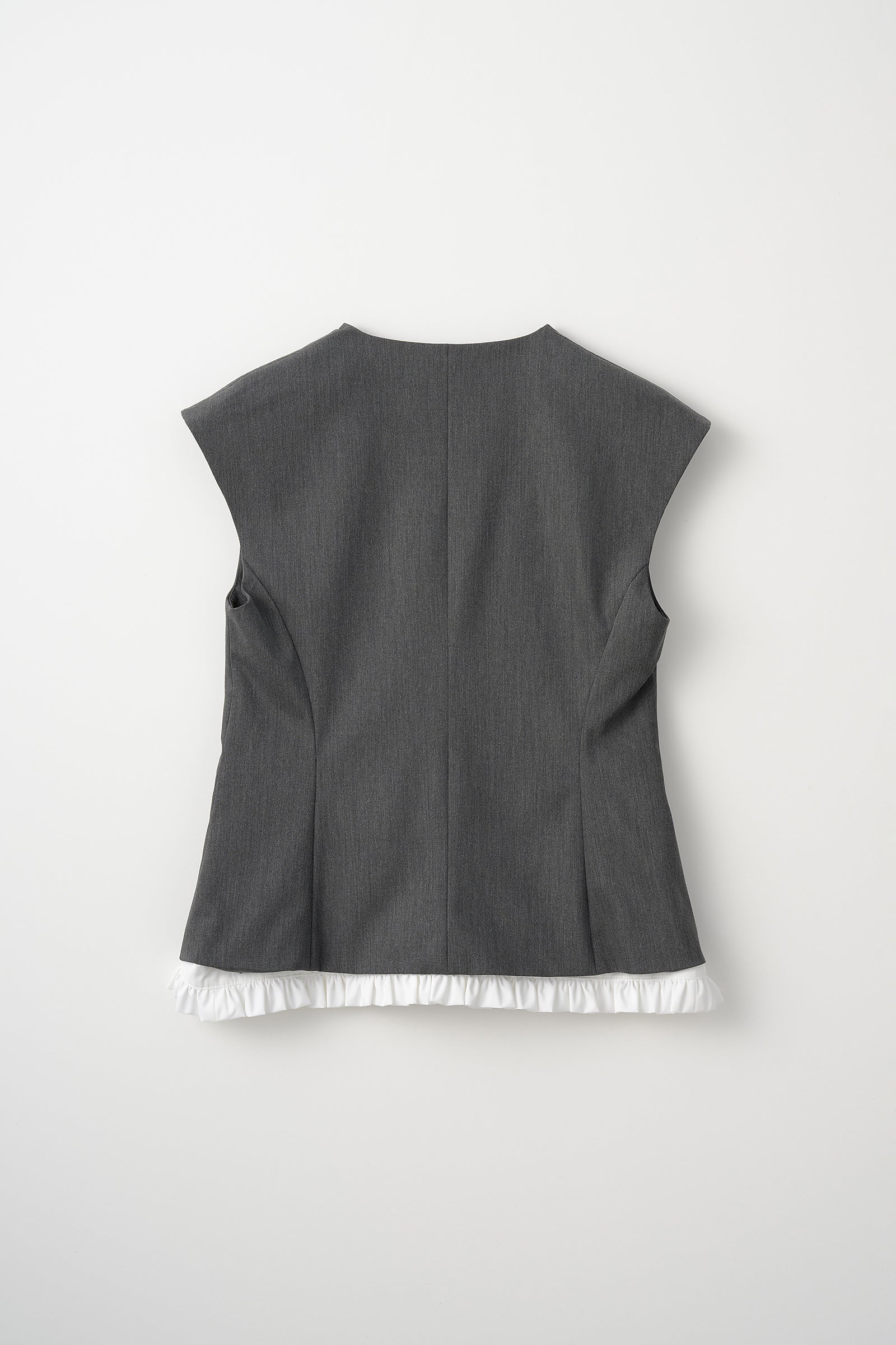 上身頃に連なる釦ボタンが印象的なノースリーブベスト。