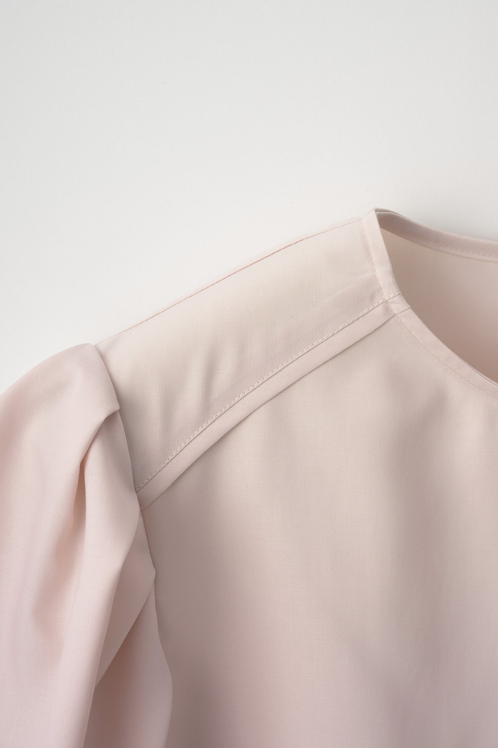 肩にタックを寄せたパフスリーブが特徴のブラウス。