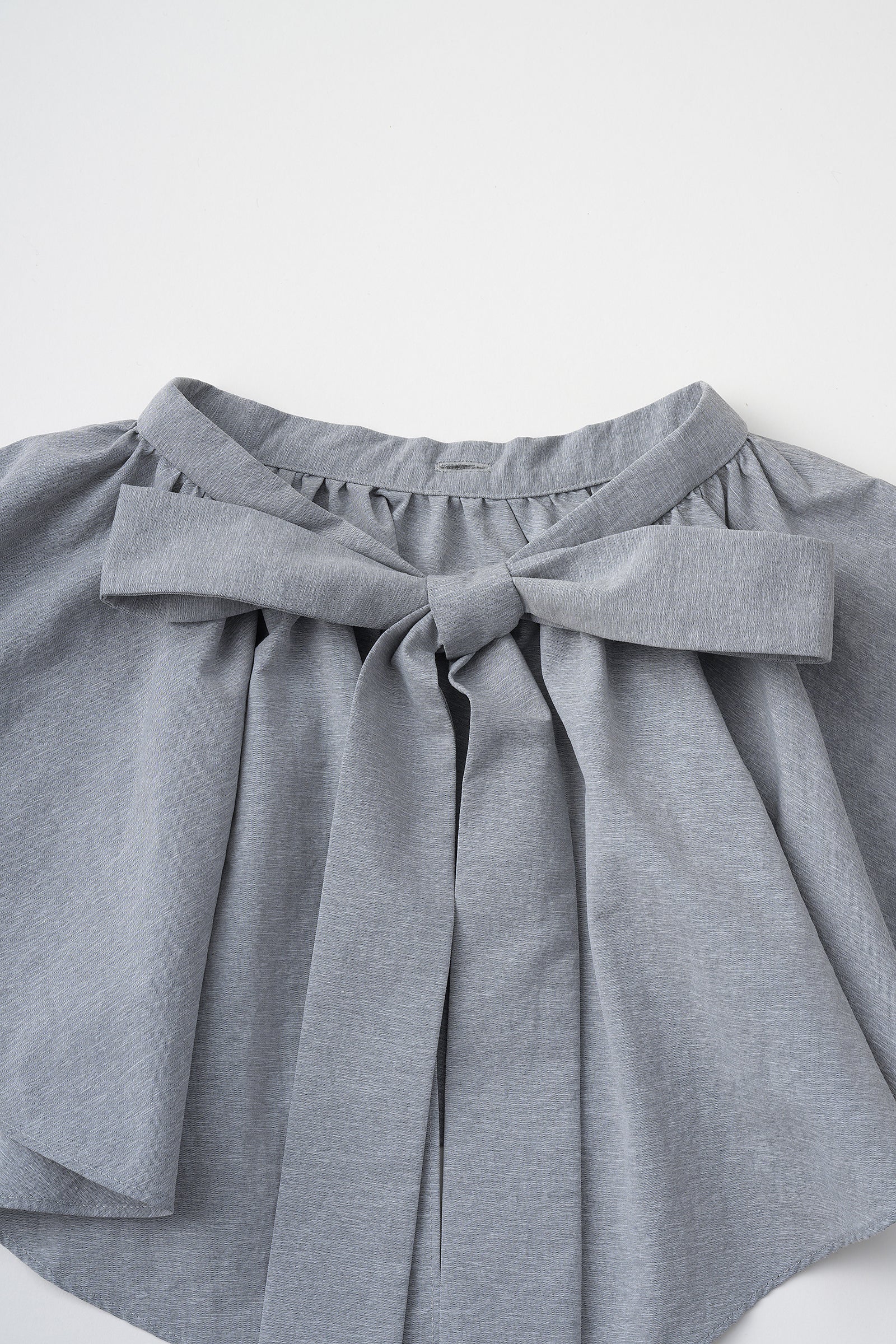 大きなリボンと襟のフリルデザインが特徴のブラウス。
