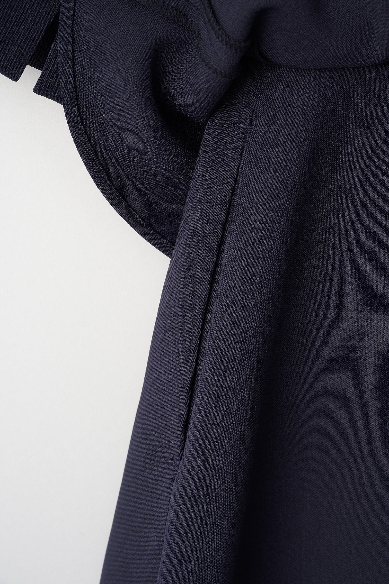 スカートにはフレア分量をたっぷりと入れ、動くたびに立体感が生まれるシルエットに仕上げています。