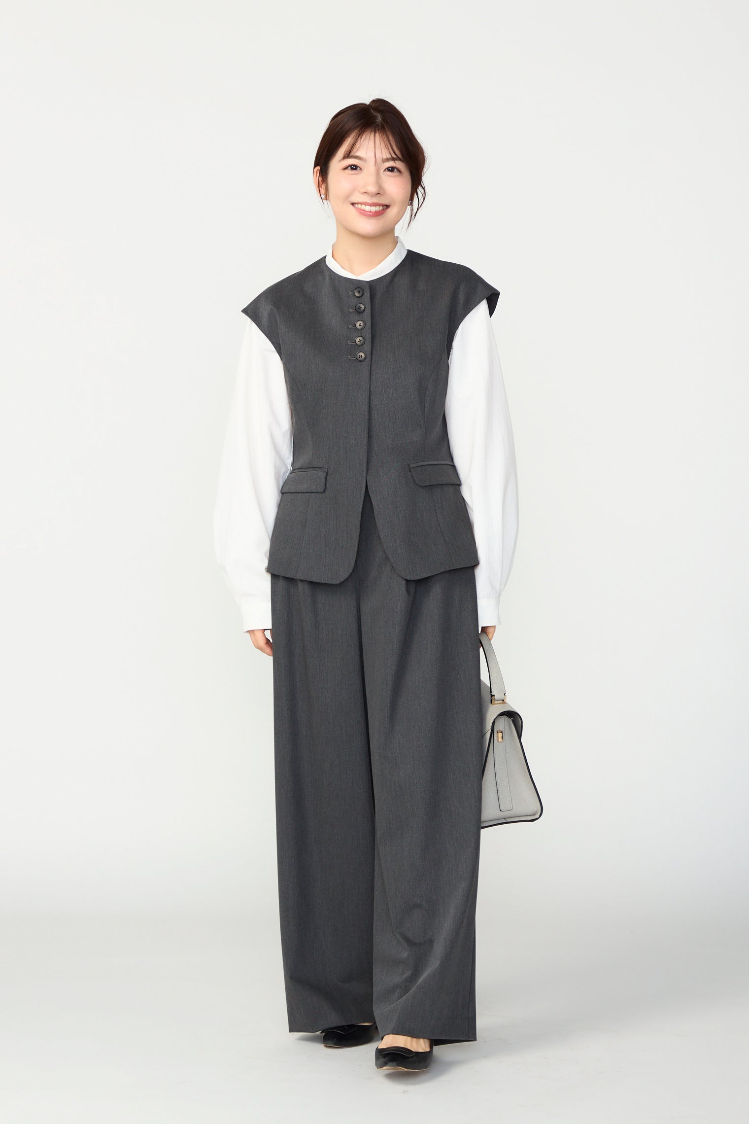 脚のラインをまっすぐに見せるストレートシルエットで、セットアップとしても単品でも活躍する一本です。