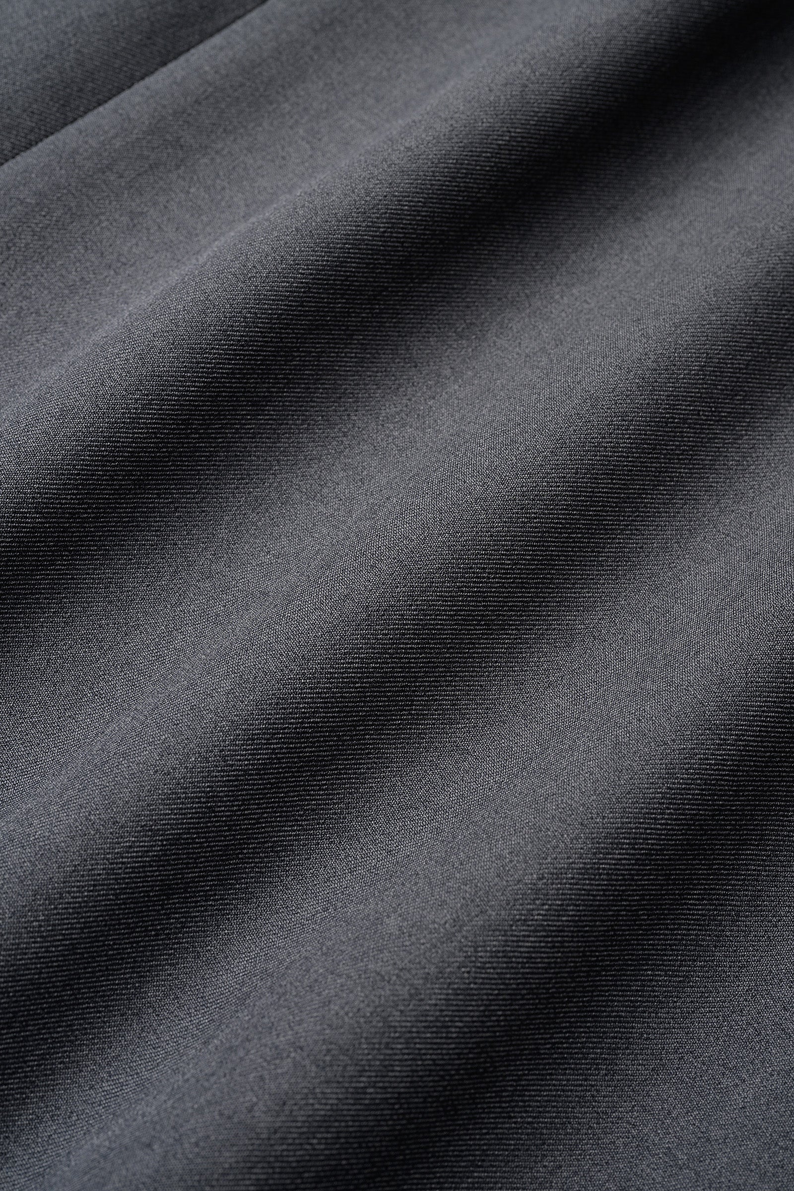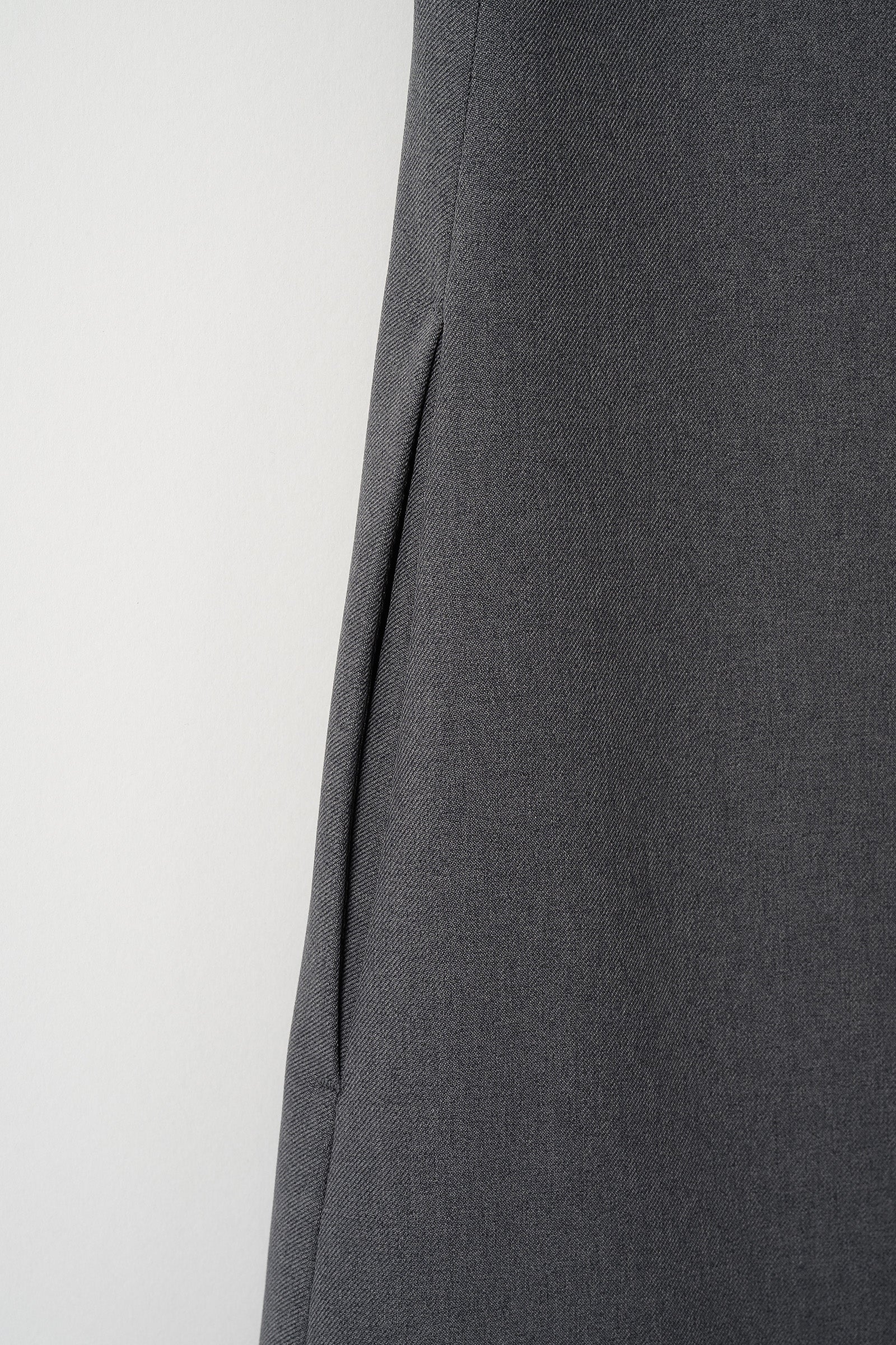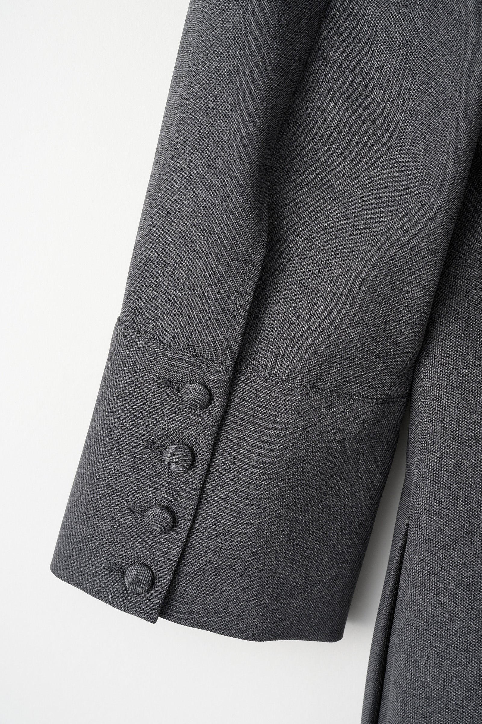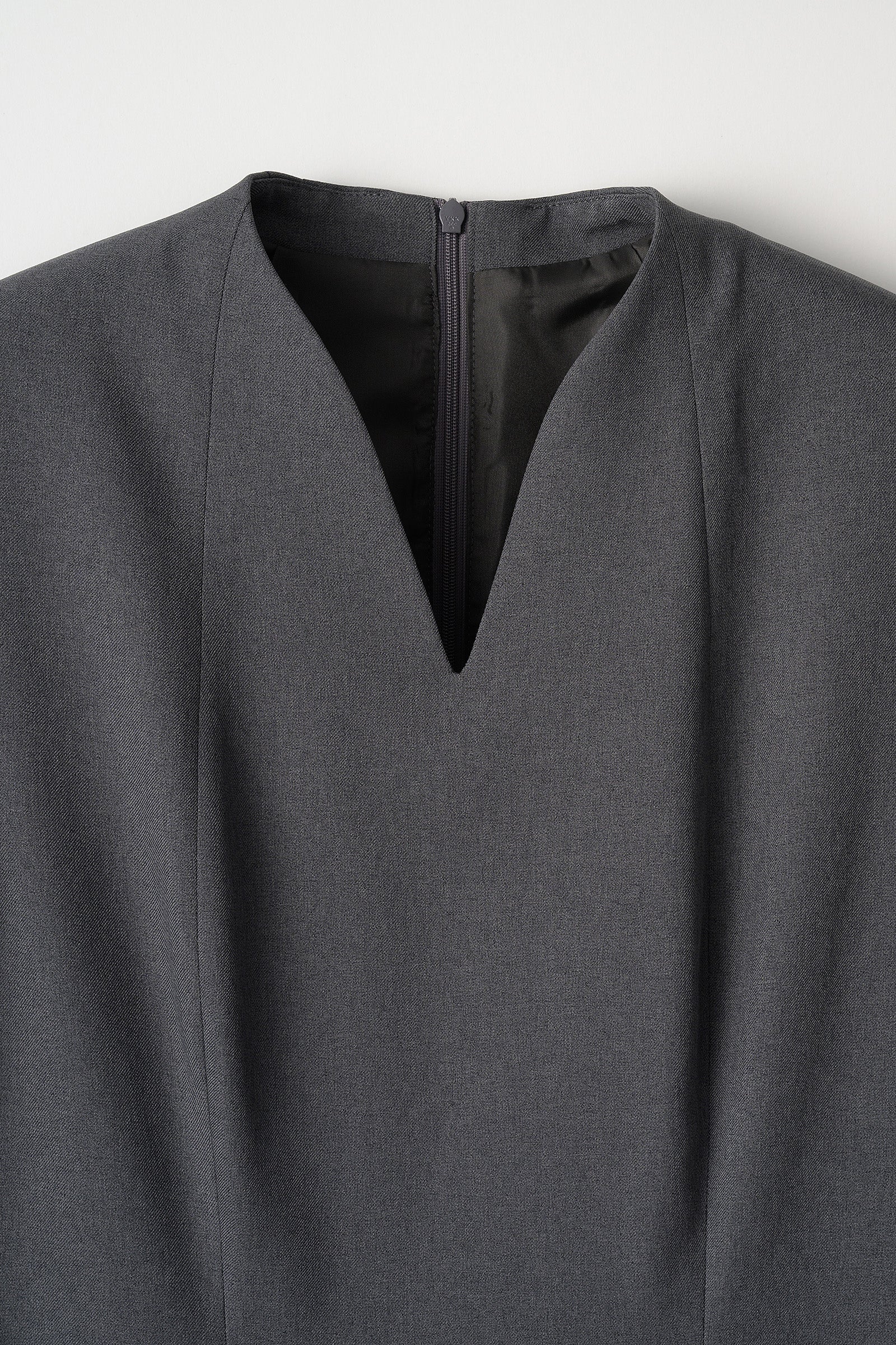 安心してお辞儀が出来る、絶妙な開きの襟ぐりと肘くらいの長さに調整した袖に、さりげなく添えられたくるみボタンで「洗練された好感度」の準備完了。